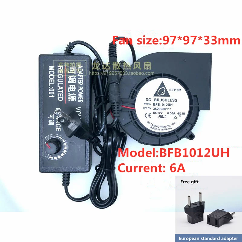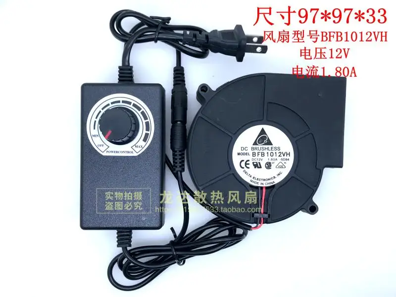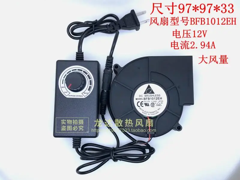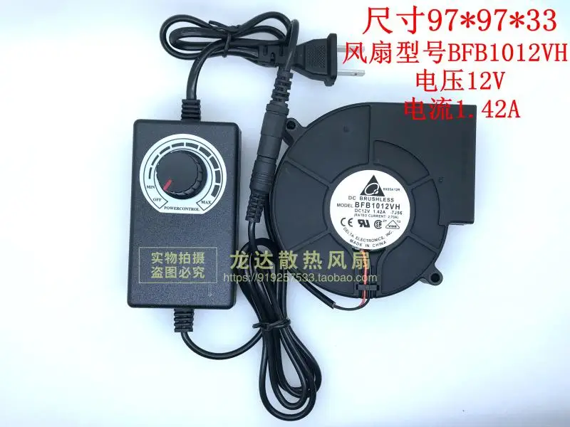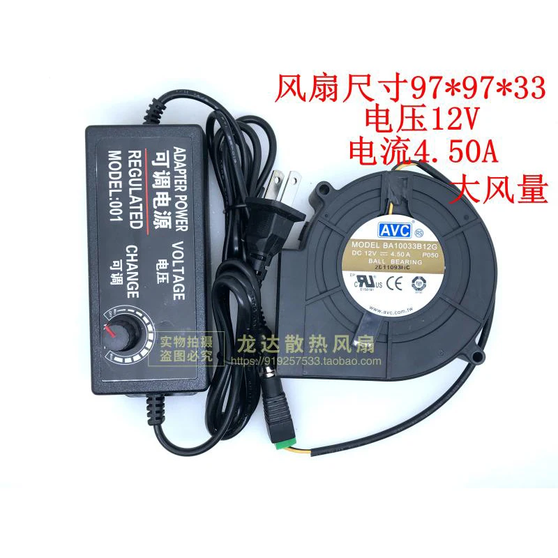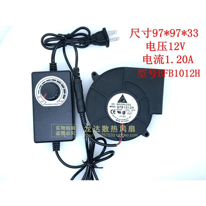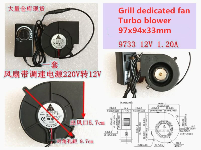 Центробежная турбина BFB1012H, 12 В, воздуходувка 9733 97x94x33 мм, вентилятор для барбекю, нагревательная печь 220 В до 12 В с блоком питания с контролем скорости