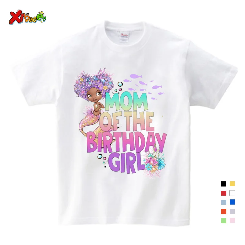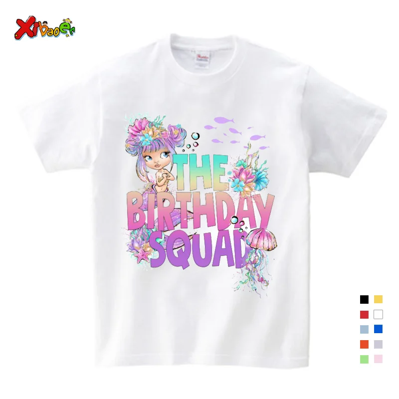 Рубашка на день рождения для семьи, футболка для девочек, Русалка д...