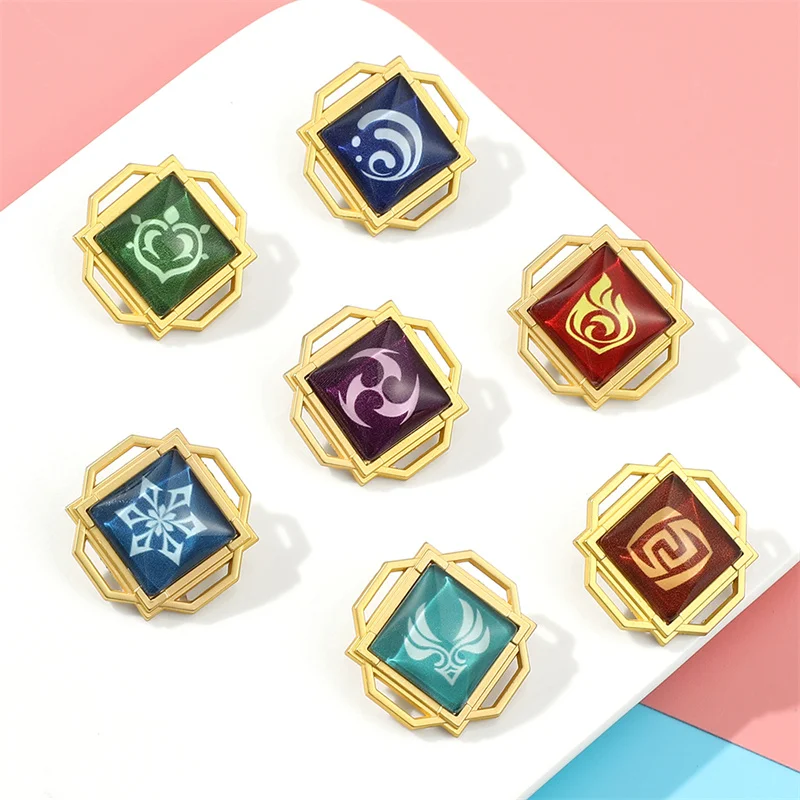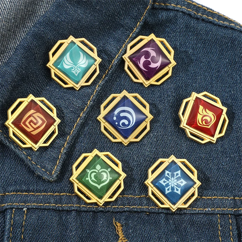 Game Cute металлическая брошь Genshin значки аниме Genshin Impact Vision светящаяся 7 элементов Оружие глаз оригинального Бога броши значок