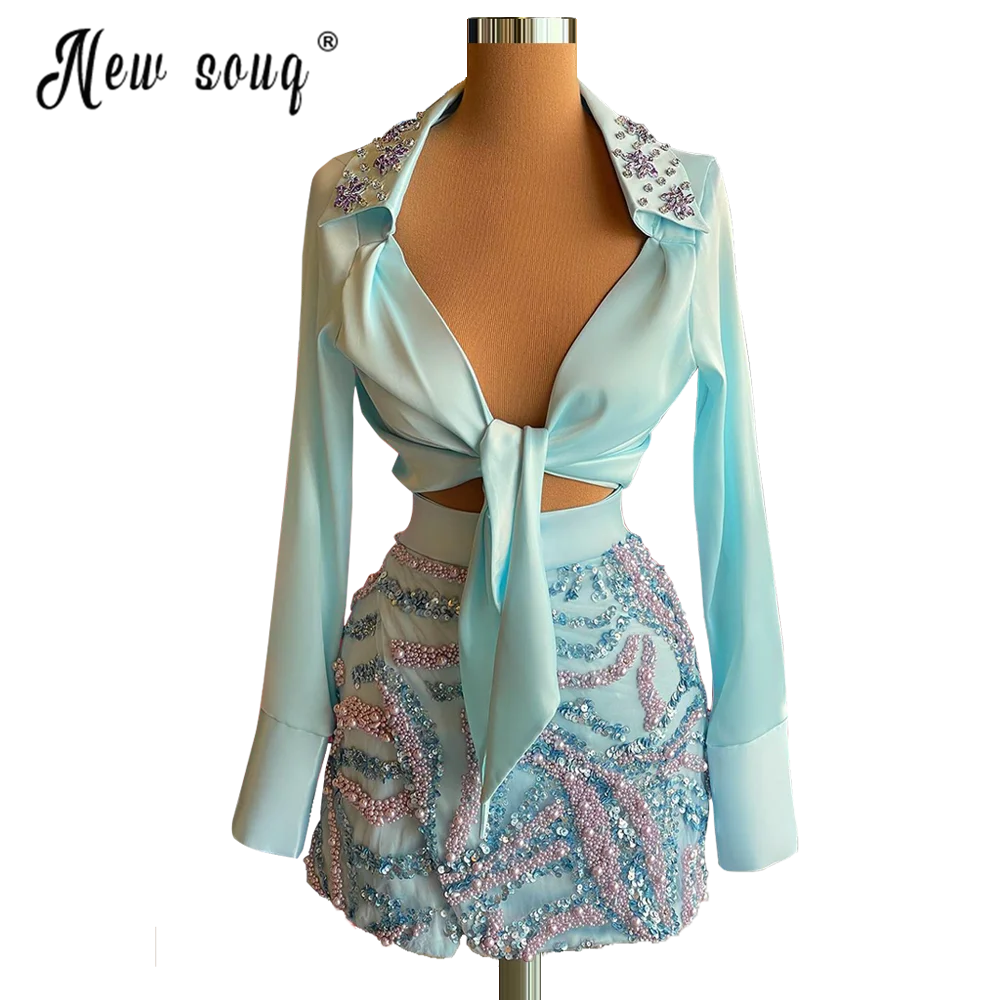 Ярко-синий, вечерние платья с вышивкой бисером, длинное арабское пл...