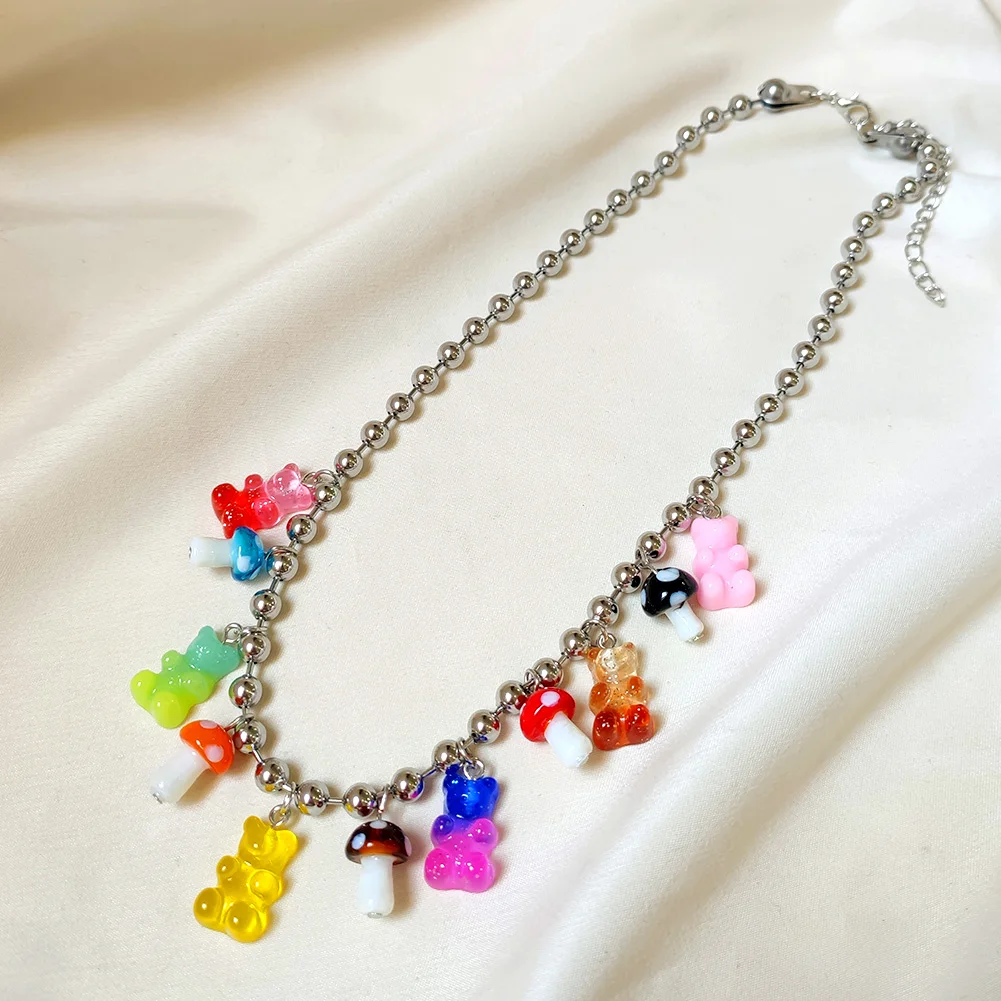 Ожерелье с подвеской в виде мармеладного медведя Y2K, металлические...