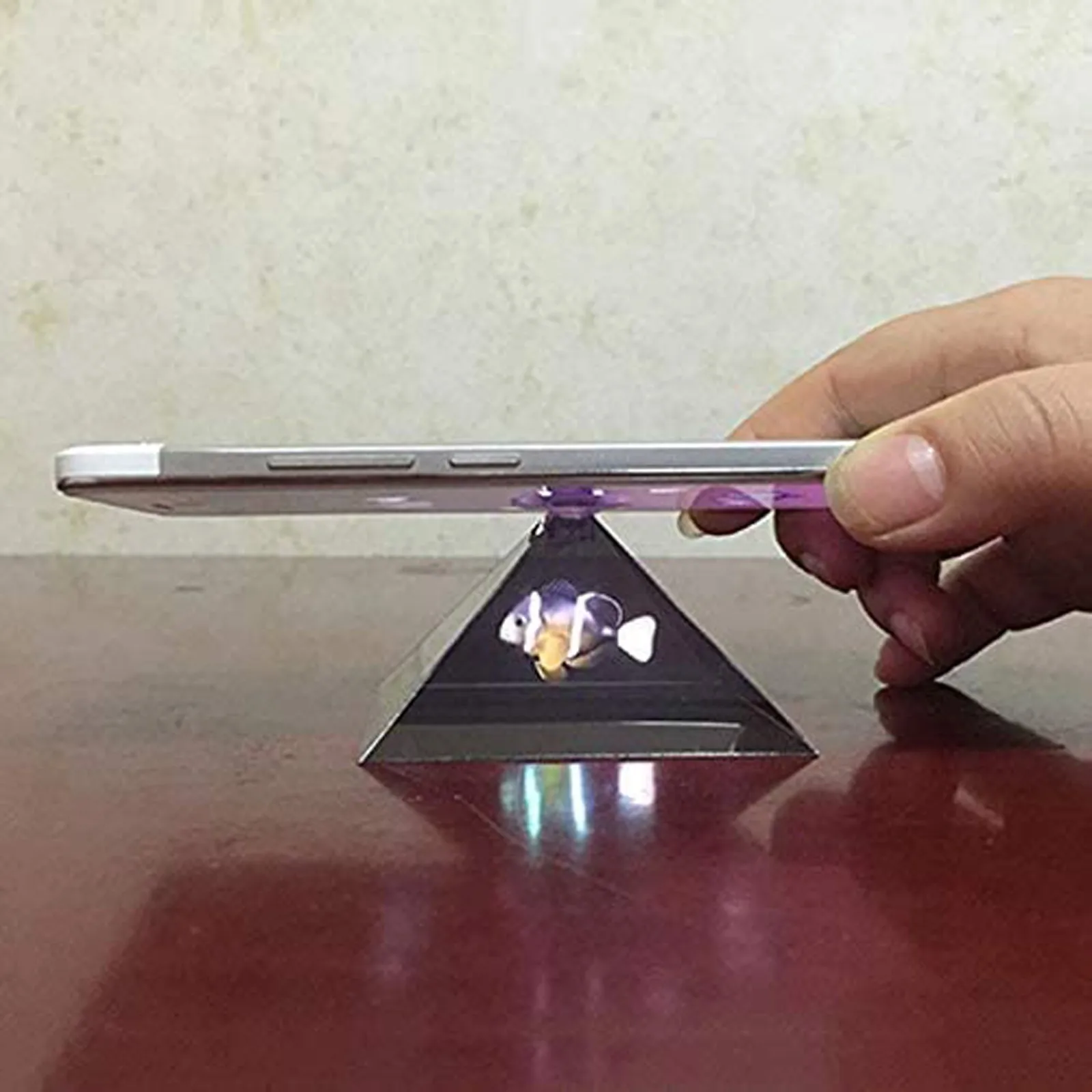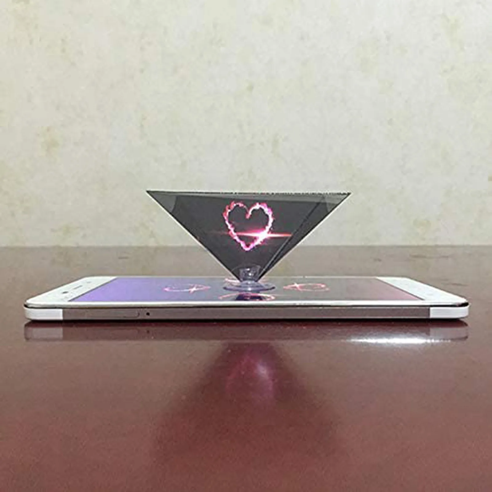 Просто подключите пирамиду к телефону с помощью прилагаемой присоски, и вы можете начать играть псевдоголограмму.