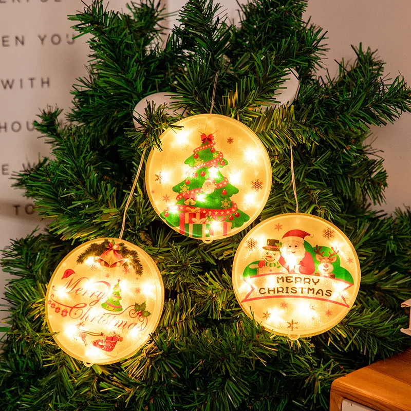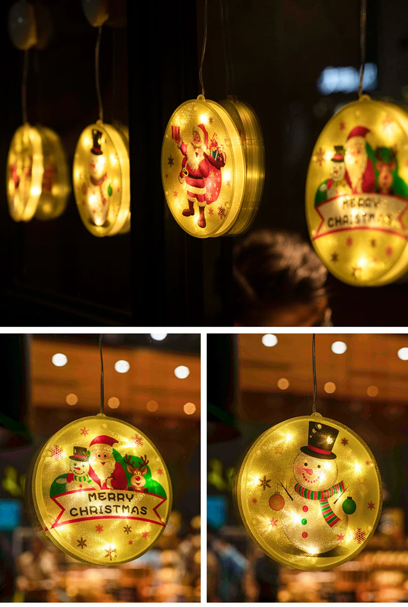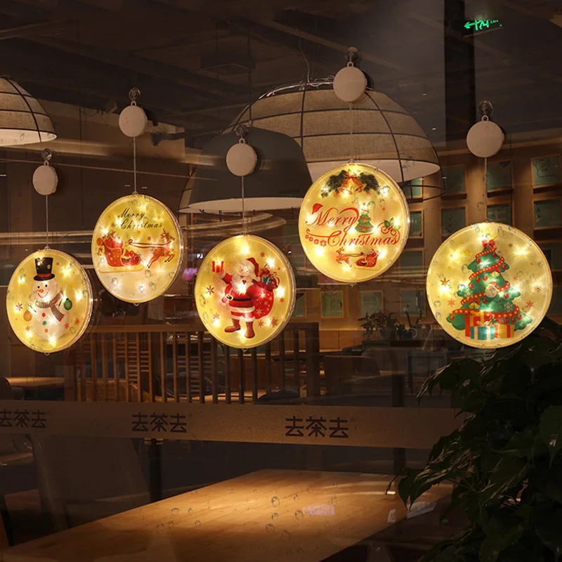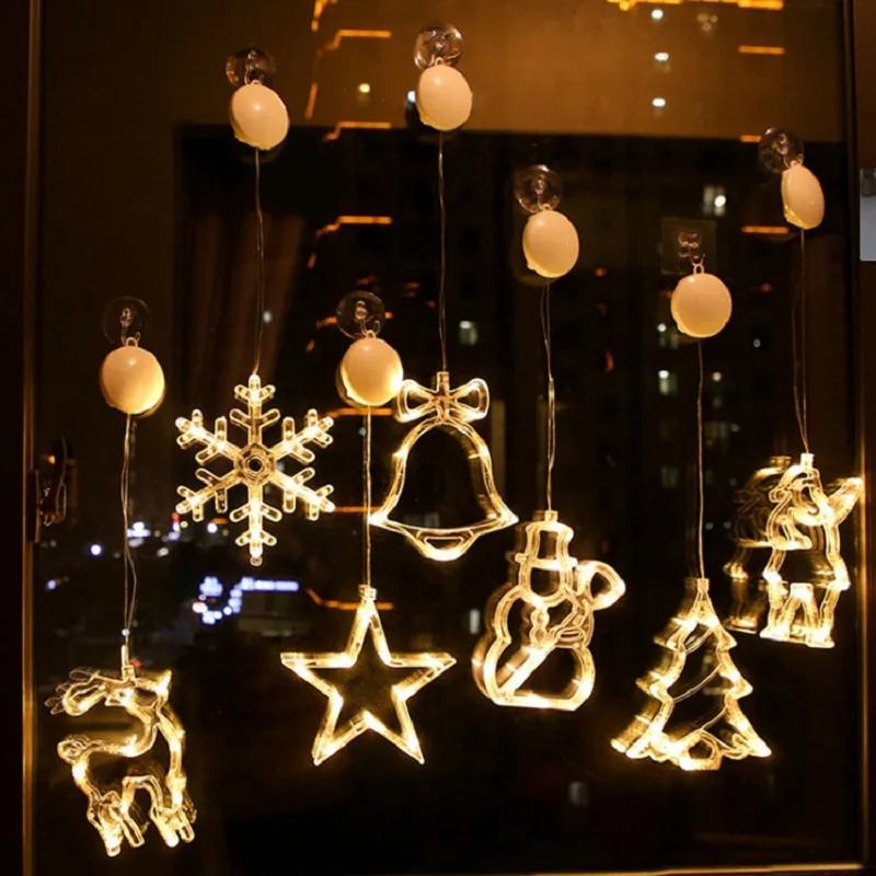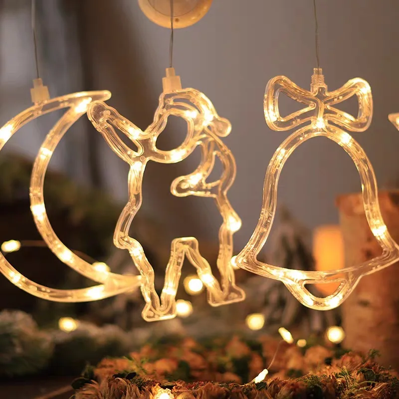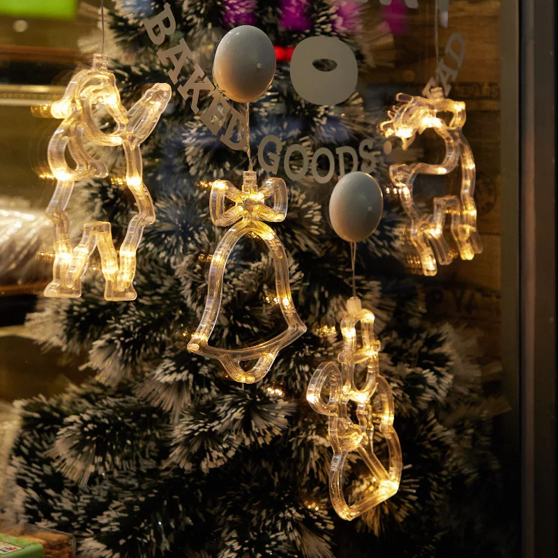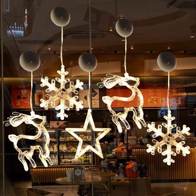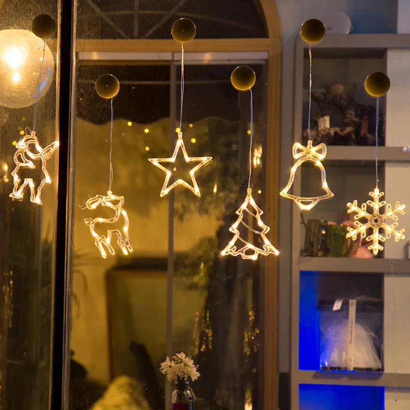 Светодиодный ные рождественские украшения лампы с присосками, снежинки, Дед Мороз, Рождественская елка Декоративный колокольчик с оленями, сказочные огни для дома, комнаты, украшения для стекла, окна