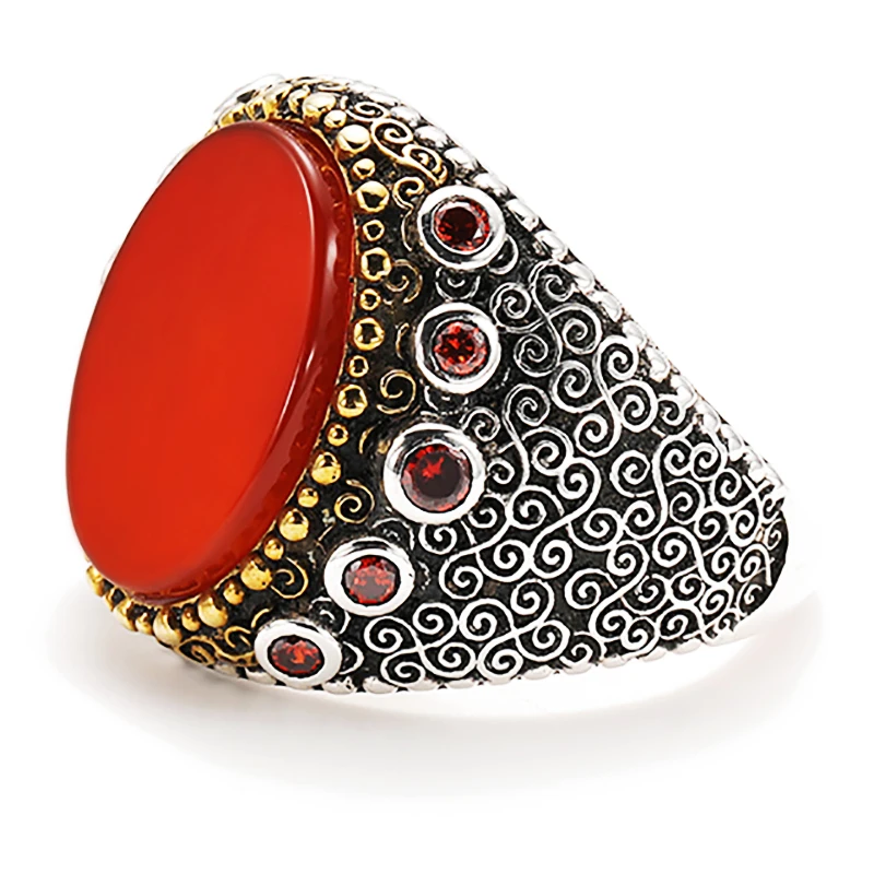 Мужское кольцо ручной работы, с инкрустацией Красным Кристаллом из ...