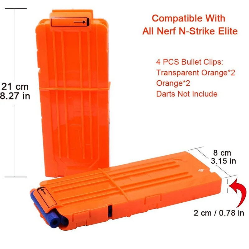 100% абсолютно новый высококачественныйИзготовлен из высококачественного АБС-пластика, ударопрочный и прочныйЭтот зажим для журнала совместим с игрушкой NERF gunОн может держать 6-18 пенопластовых или мягких пуль, но лучше для 5-16 пуль.Подходит для пули Размер 7,2*1,3 смОтличный аксессуар для игрушечный пистолет с мягкими пулямиОсобенности:Цвет: оранжевыйМатериал: АБС-пластикПосылка: 1 зажим для пули
