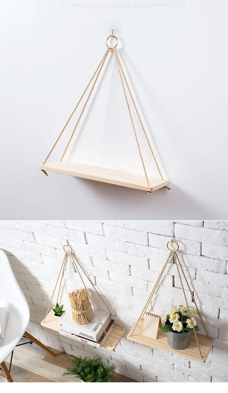 Деревянные качели, подвесная веревка, настенная полка, полка для цв...