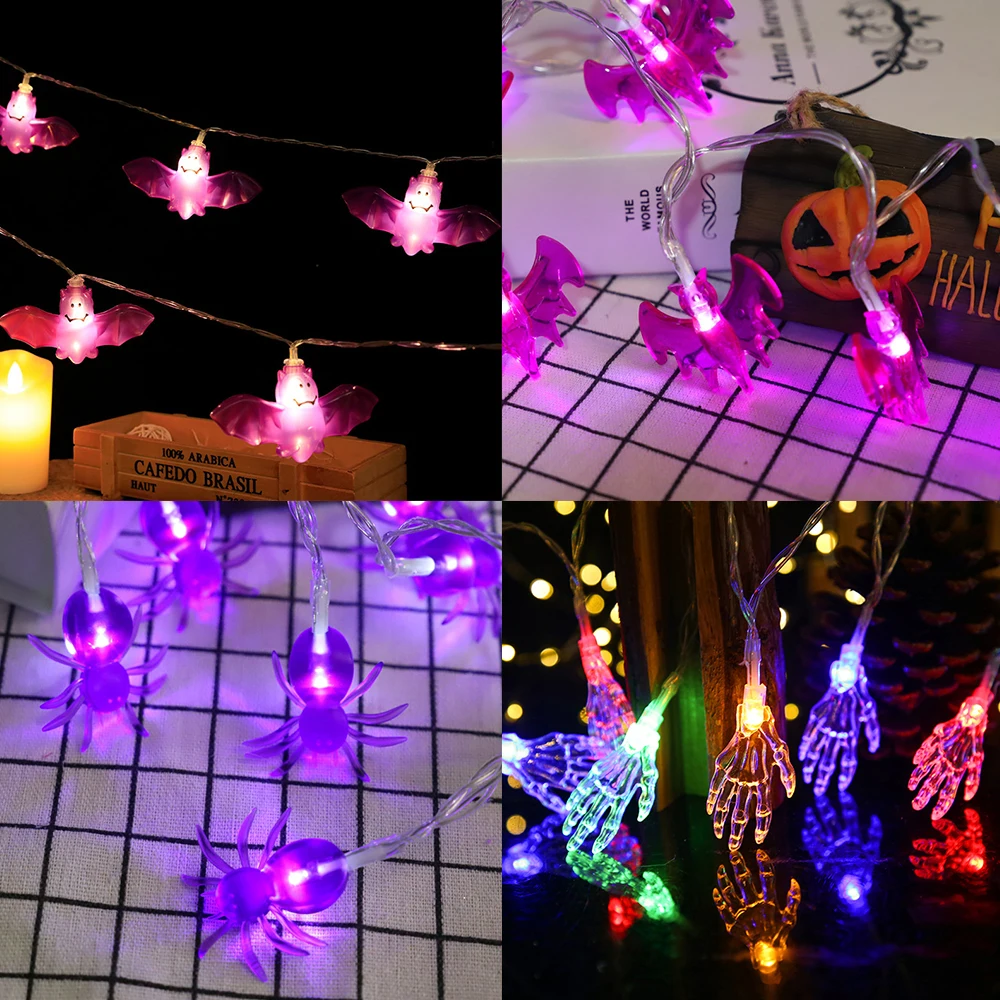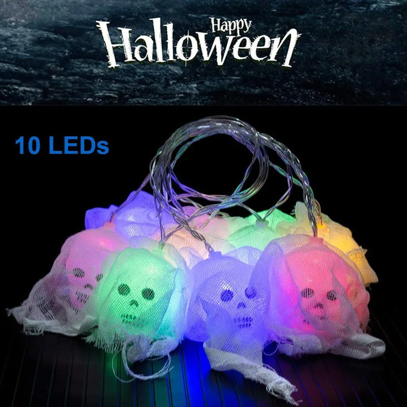 Гирлянда с черепом паука, 10 светодиодов, 1,5 м