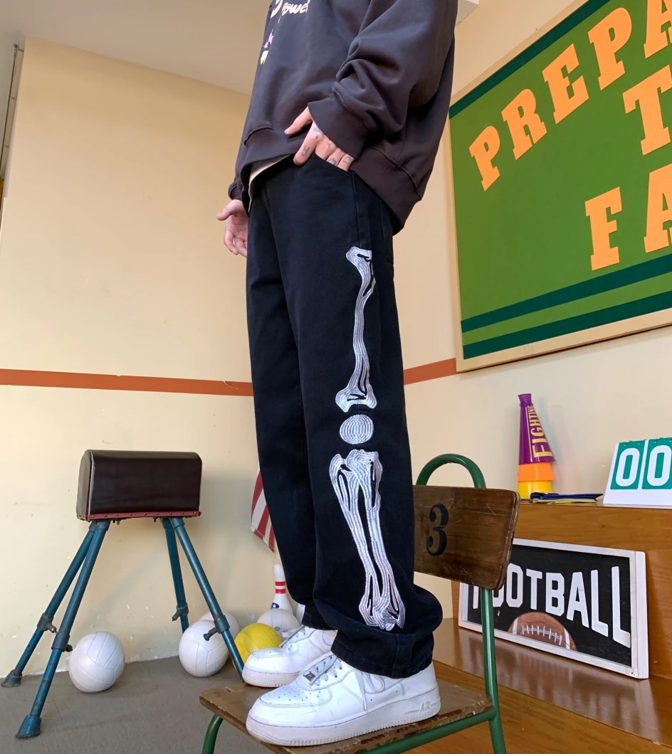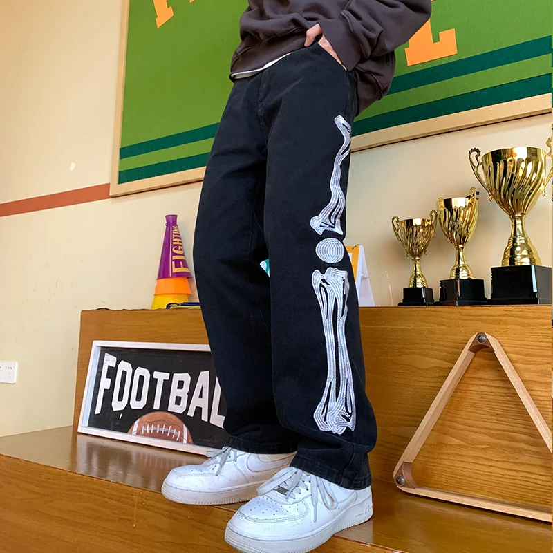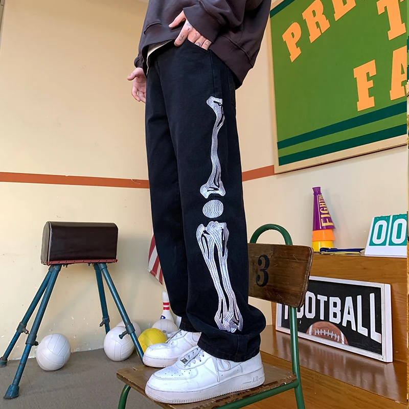 Джинсы-багги мужские с принтом, широкие, оверсайз, весна 2022