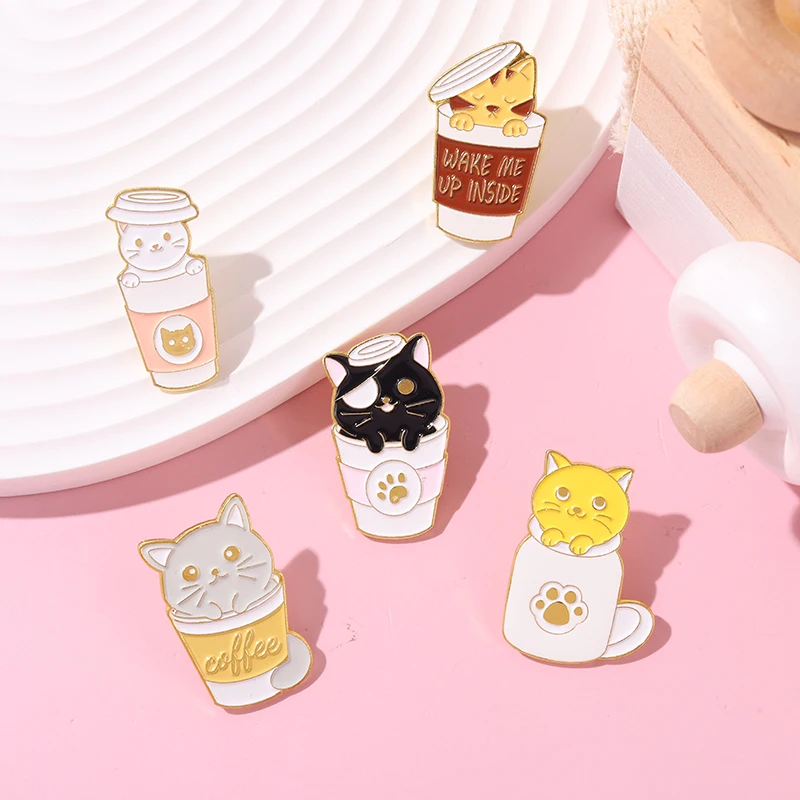 Кофейная кошка эмалированная заколка кофейная чашка с фотографией металлические значки Сумка Одежда Заколки ювелирные изделия подарок для влюбленных кошек