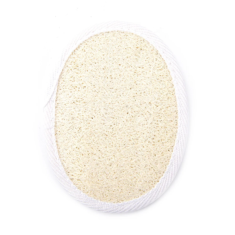 Loofah + sponge + white towel cloth + white polyester bag edge
