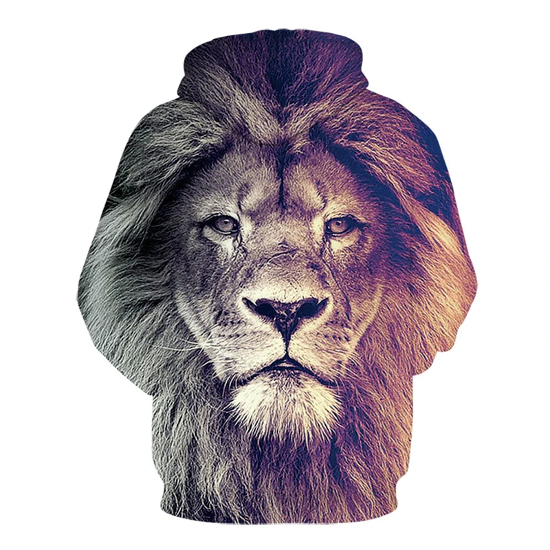 Мужская толстовка с капюшоном и принтом в виде льва, с 3d рисунком,...