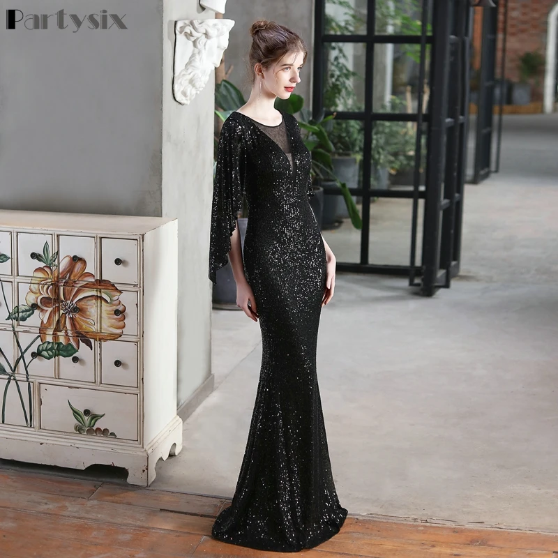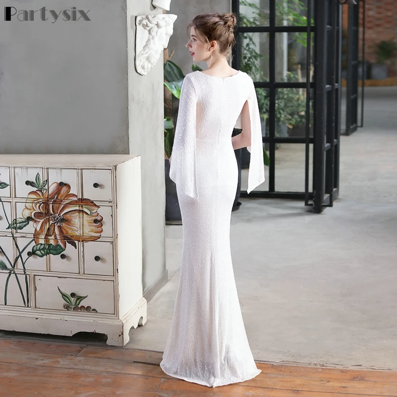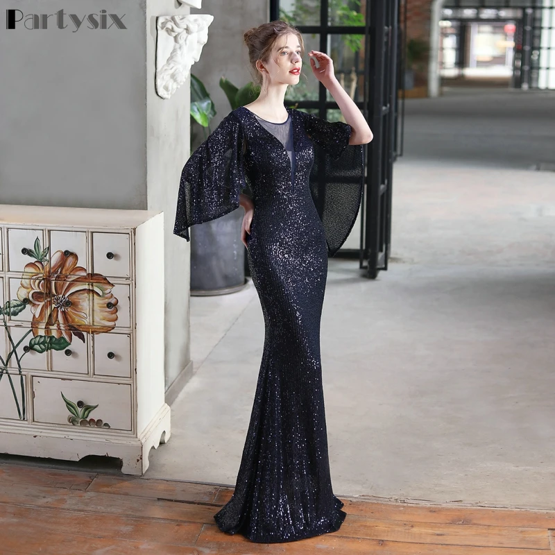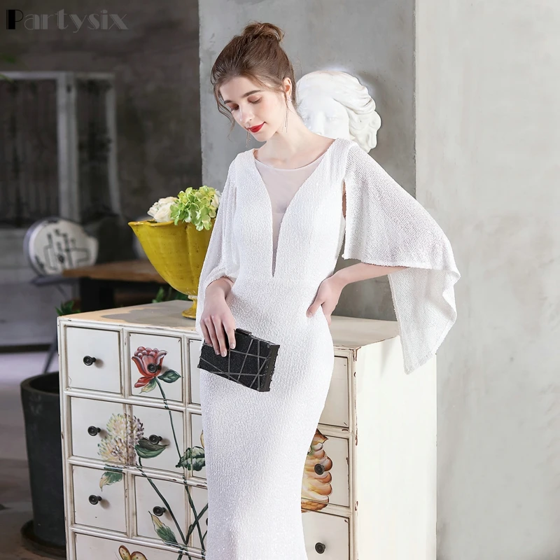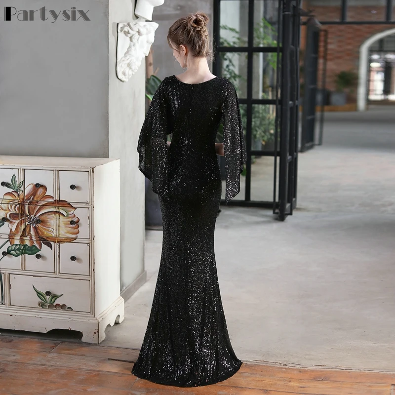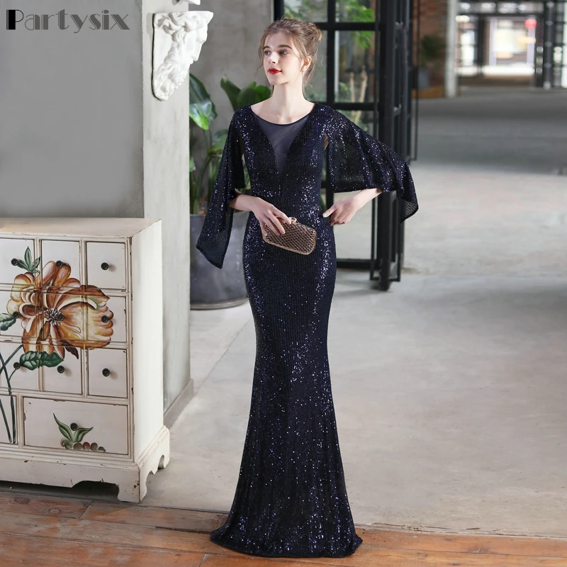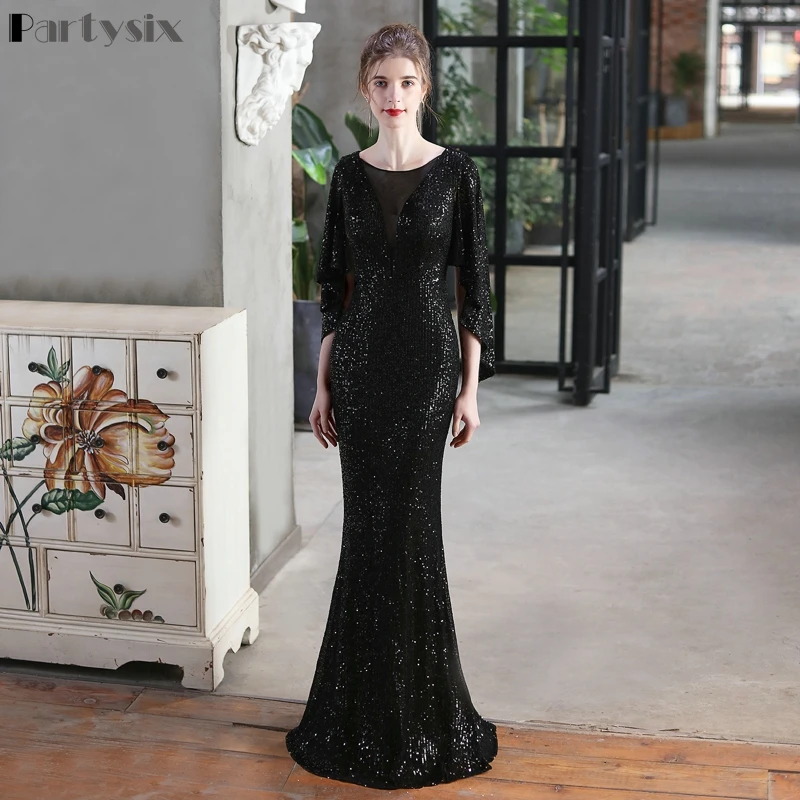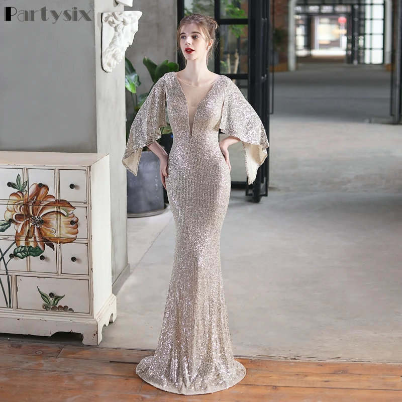 Женское коктейльное платье-русалка, элегантное вечернее платье с рукавом три четверти и V-образным вырезом, блестящее платье для выпускного вечера