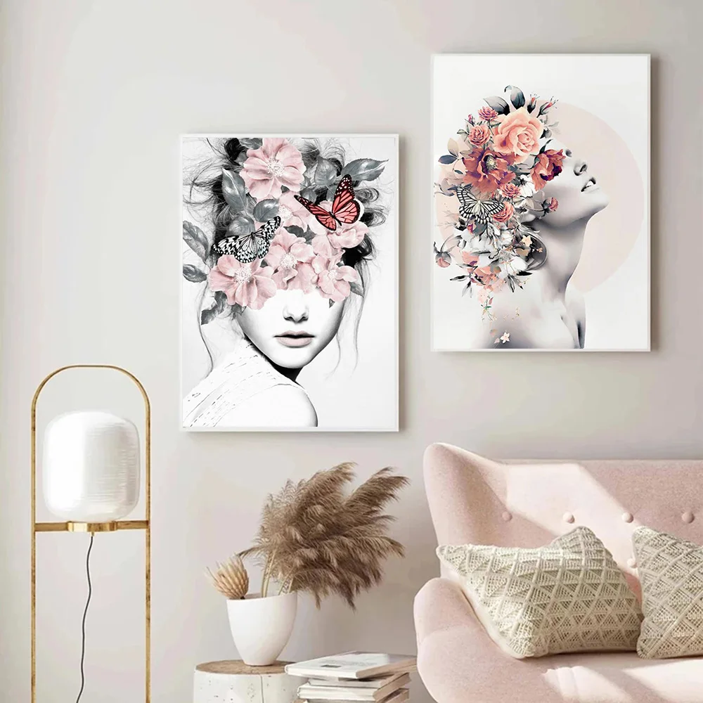 Модные постеры на холсте с изображением головы и цветов для привлекательных женщин и принтов в скандинавском стиле Настенная картина декор для гостиной и спальни