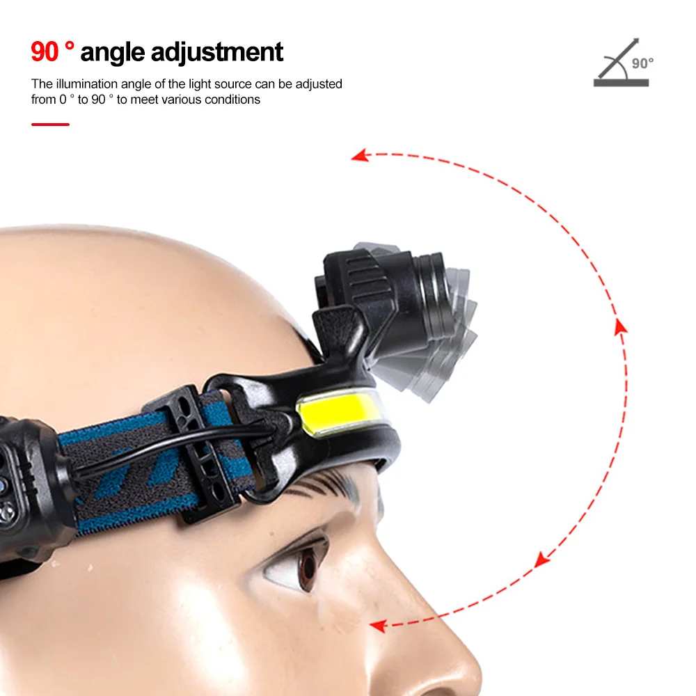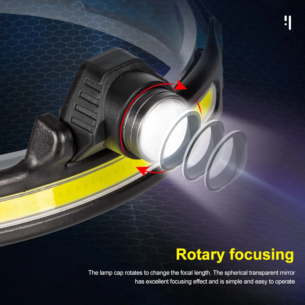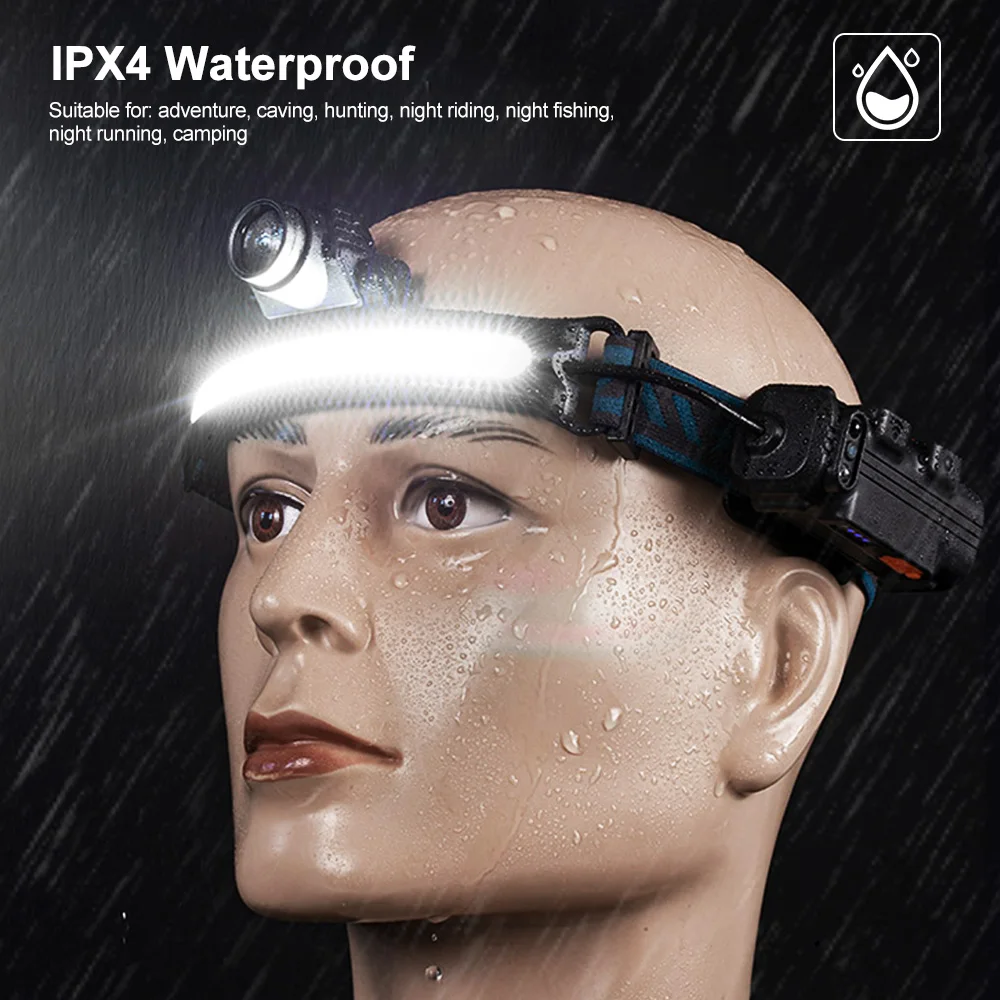 Фонарь налобный XPG + COB светодиодный с умным датчиком, водонепроницаемый супер яркий фонарь с зумом и зарядкой от USB для рыбалки и кемпинга, 2 в 1