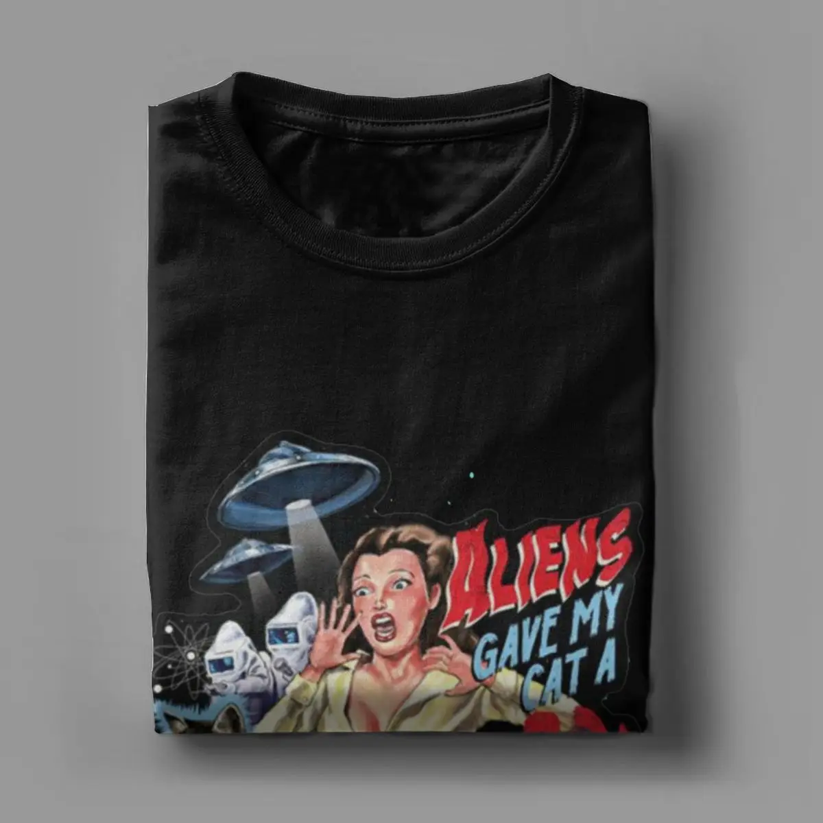 Мужские футболки с изображением инопланетянина дали моему коту бороды ужас, Забавные футболки, футболка с коротким рукавом и круглым вырезом, хлопковая одежда с графическим принтом