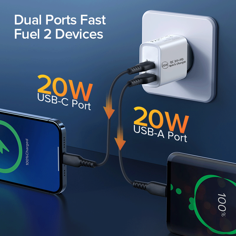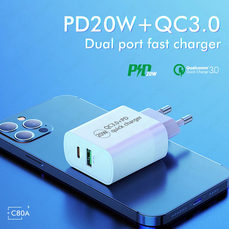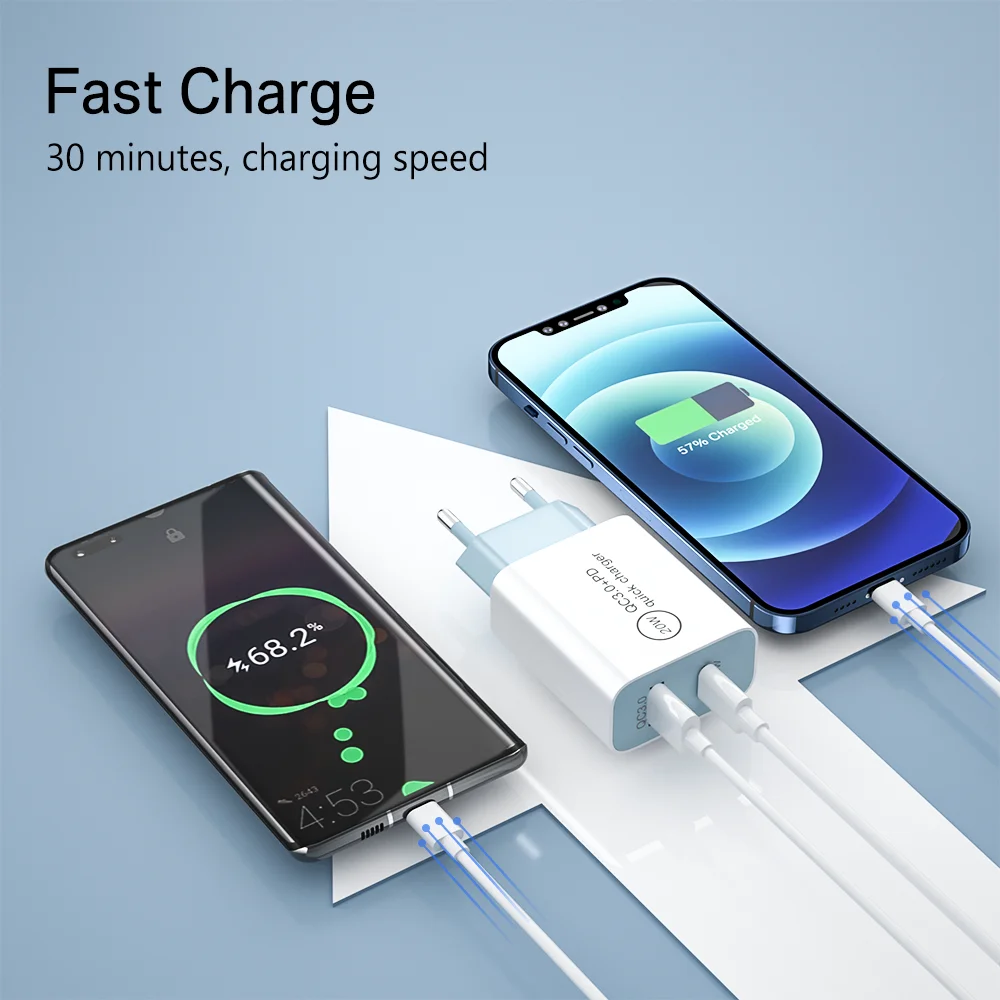 Быстрое зарядное устройство для телефона USB Тип C PD 20 Вт 2 порта...