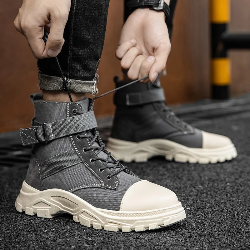 Осень 2021, классические мужские ботинки-мартинсы цвета хаки, повседневные короткие ботинки, модные мужские ботильоны на платформе, мужские уличные ботинки с высоким берцем