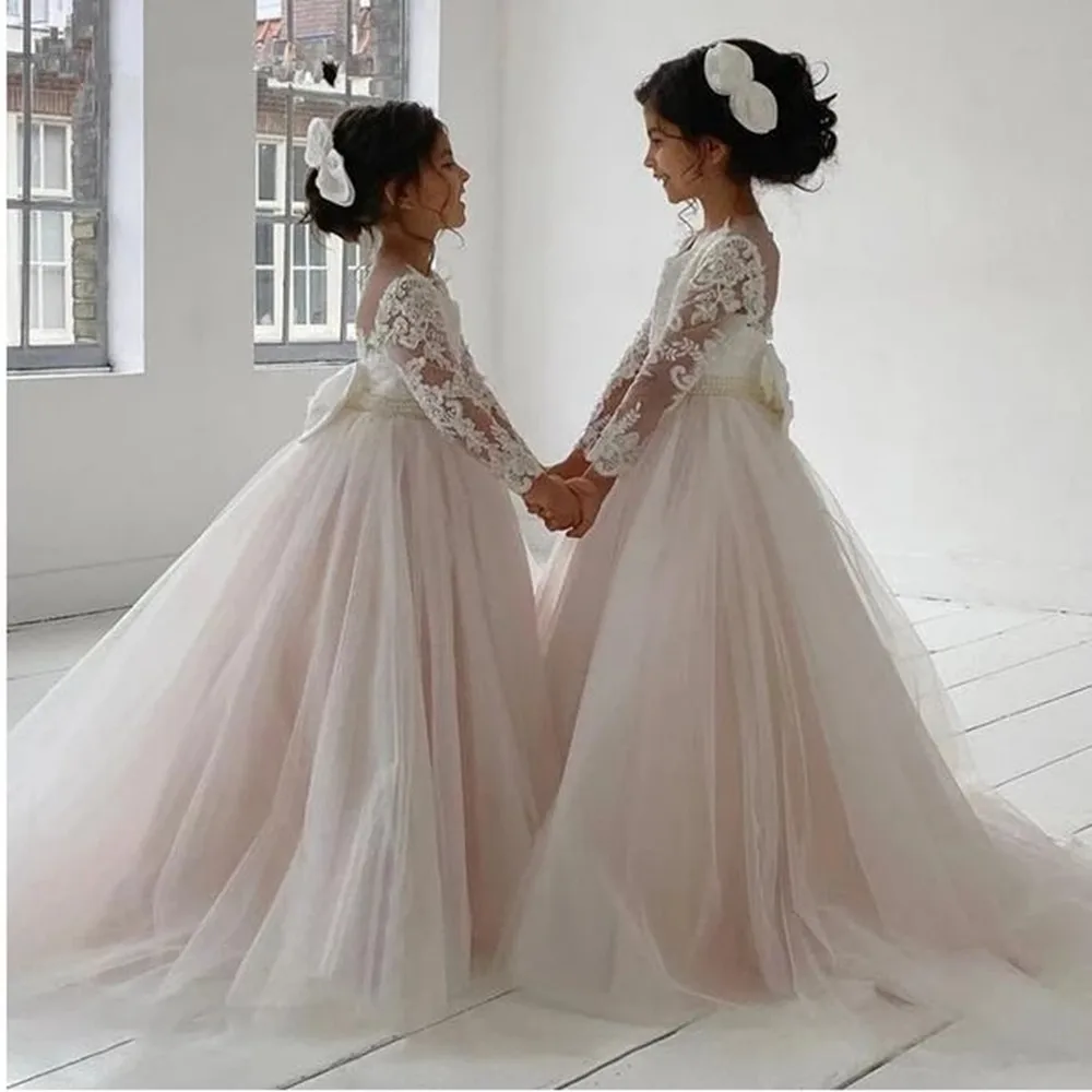 Кружевные Платья с цветочным рисунком для девочек на свадьбу с длин...