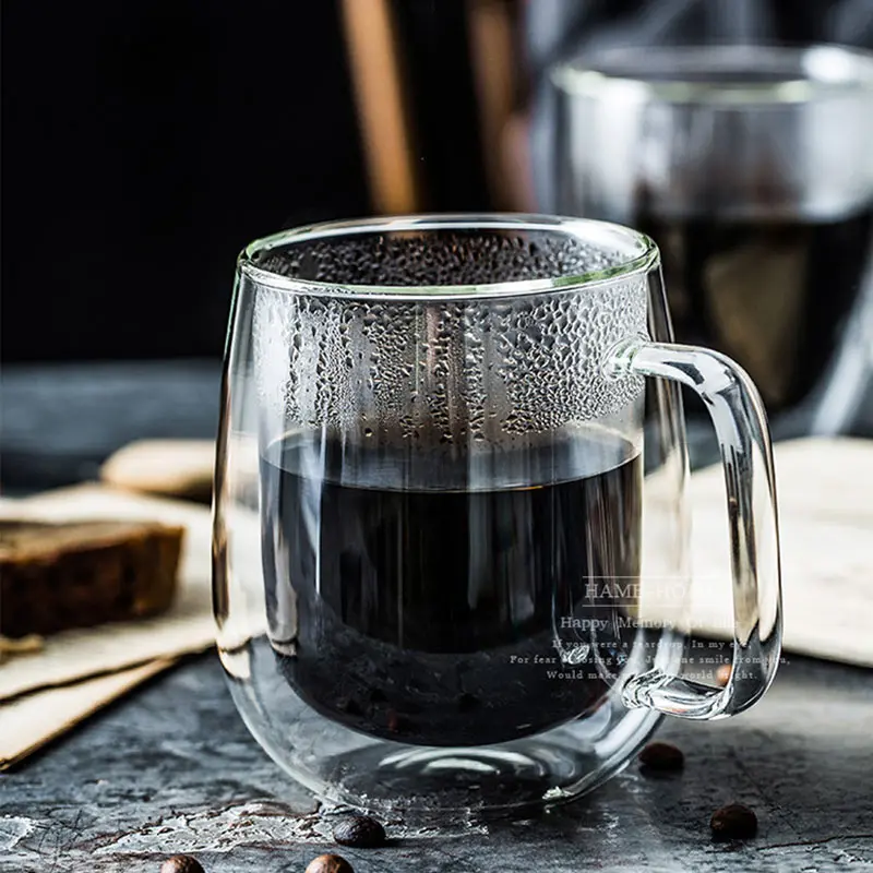Стеклянная кружка с двойными стенками для чая, пива, молока
