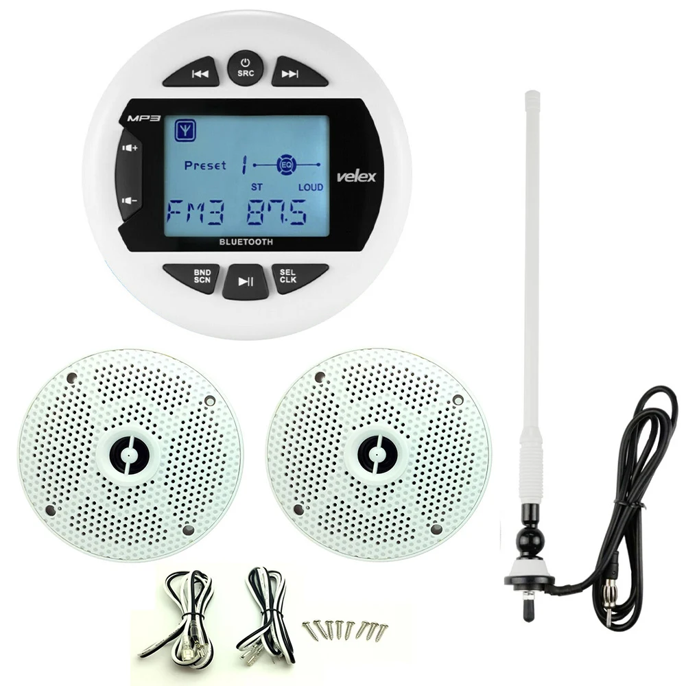 Водонепроницаемый морской Bluetooth аудио стерео радио плеер + 6,5 дюйма водонепроницаемые динамики для лодки ATV SPA Гольф-карт + FM AM антенна