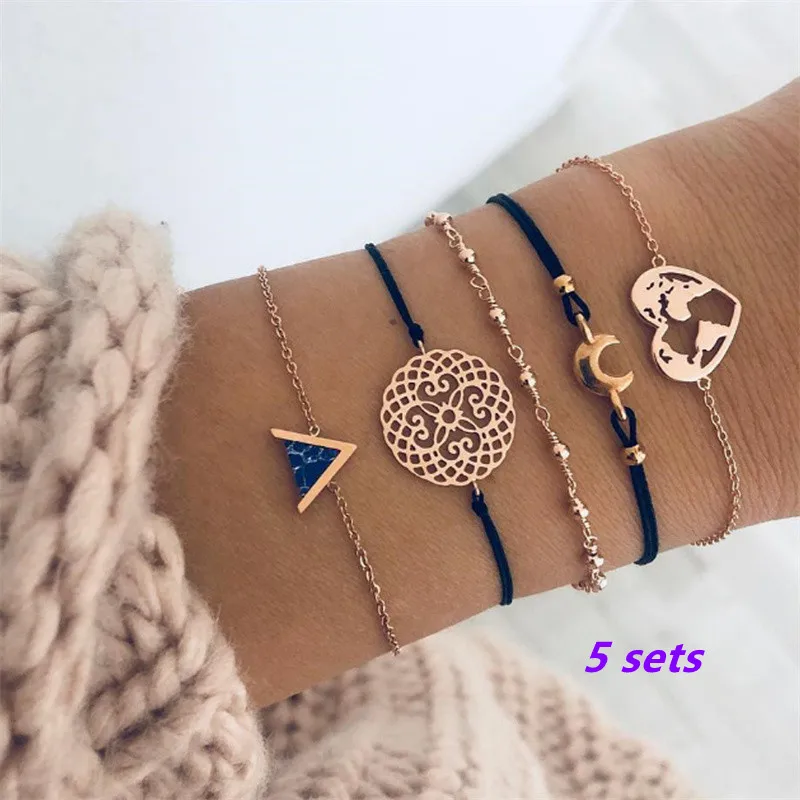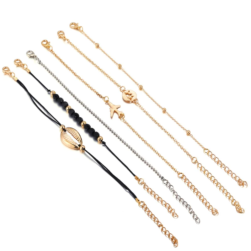 5 шт.компл. богемный Комплект браслетов с подвесками в виде ракушек...
