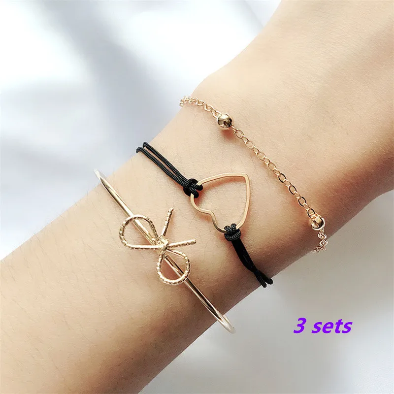 Новинка 2021, богемный женский браслет-цепочка в виде самолета в форме сердца с кристаллами и полым бантом, черный веревочный браслет, комплект ювелирных изделий в стиле панк