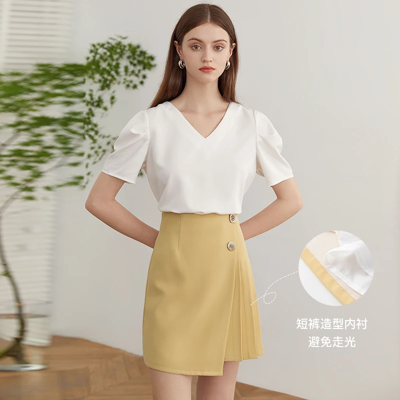 Женская юбка-шорты fansilзанен желтыми пуговицами