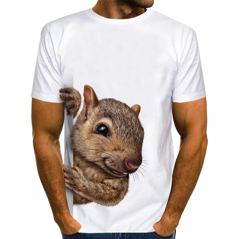 Футболка мужская с рисунком белки, милая футболка с 3D-принтом живо...