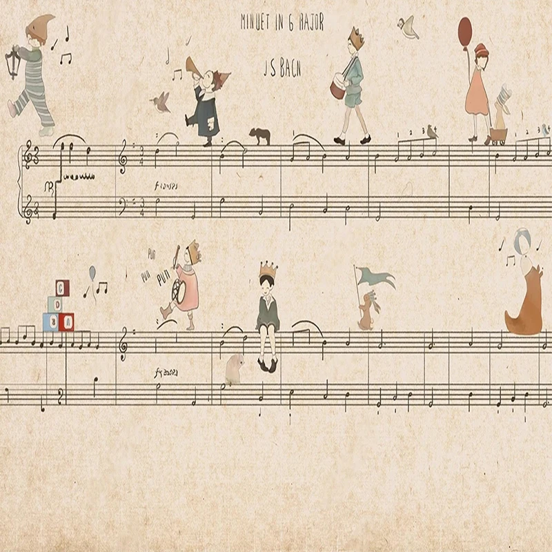 На заказ любой размер обои рисованной мультфильм музыка Оценка фон украшение стены живопись музыкальная нотка ребенок обои