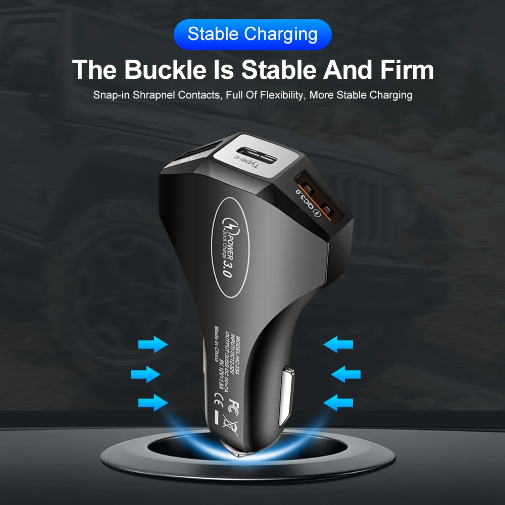 Автомобильное зарядное устройство с 3 портами, быстрая зарядка 3,0, двойной USB-адаптер, быстрая зарядка для iPhone 12, 11, Samsung, Xiaomi, телефона PD, Тип C, автомобильное зарядное устройство