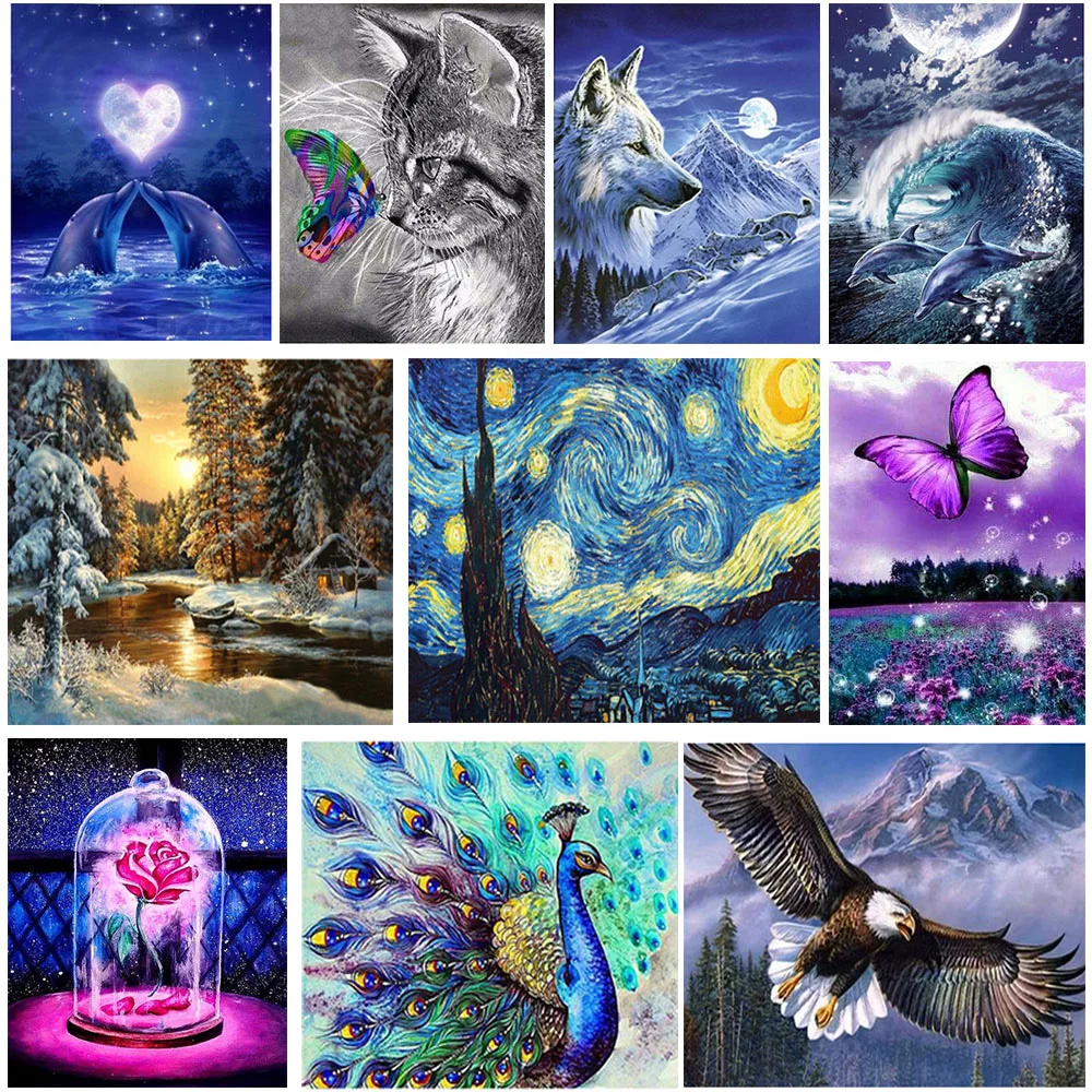Алмазная живопись своими руками, животные, пейзаж 5D, искусственная...