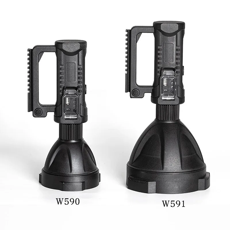 Мощный светодиодный светильник-вспышка портативный фонарь XHP50/XHP90 USB Перезаряжаемый поисковый светильник водонепроницаемый точечный светильник со штативом светильник для рыбалкиМодель: W590 -SmallЛампа: XHP50Мощность: 15 ВтВремя работы: 4-6 часовМетод зарядки: Mirco usb зарядкаВремя зарядки: 5-8 часовМатериал: инженерный пластикАккумулятор: 3*18650 встроенный аккумуляторРежим: высокий/средний/низкий/СтробоскопРазмер: 27 см * 13 смВес: 529 гМодель: W591 -BigЛампа: XHP70.2Мощность: 20 ВтВремя работы: 4-6 часовМетод зарядки: Mirco usb зарядкаВремя зарядки: 5-8 часовМатериал: инженерный пластикАккумулятор: 3*18650 встроенный аккумуляторШестерня: Высокая/средняя/низкая/стробоскопРазмер: 31 см * 16 смВес: 736 гОсобенности* Супер яркий: XHP серии лампы бусины обеспечивают супер яркий светильник, расстояние луча превышает 500 метров.* Мобильная мощность: встроенный литий-ионный зарядный светильник большой емкости с usb-портом, вы можете быстро и легко зарядить устройство через индикатор питания* Многофункциональность: супер яркие фары, большое расстояние освещения и большое расстояние. Его можно использовать как поисковый светильник, Кемпинговый светильник, рабочий светильник и т. д.* Водонепроницаемый. Рейтинг IPX6 означает, что он может предотвратить брызги во всех направлениях и подходит для внутренней или наружной среды и суровых погодных условий.* Широкое применение. Он легко переносится и может быть оснащен базой, которая очень подходит для активного отдыха, например, пеших прогулок, кемпинга, охоты, приключений, ночной рыбалки и т. д.Список посылкаA:1 * W590 фонарик (маленький) 1 * USB кабель для зарядки 1 * Высококачественный штативB:1 * W591 фонарик (большой) 1 * USB кабель для зарядки 1 * Высококачественный штатив