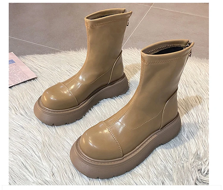 Женские ботинки на молнии, женская обувь с круглым носком, роскошны...