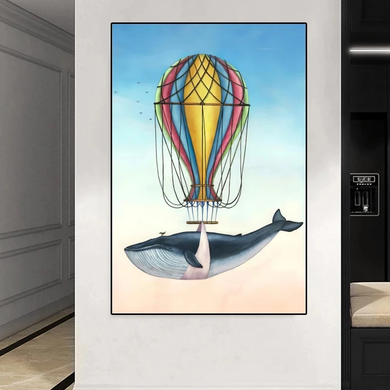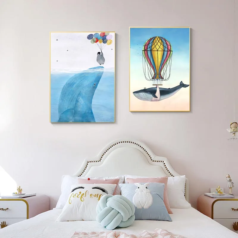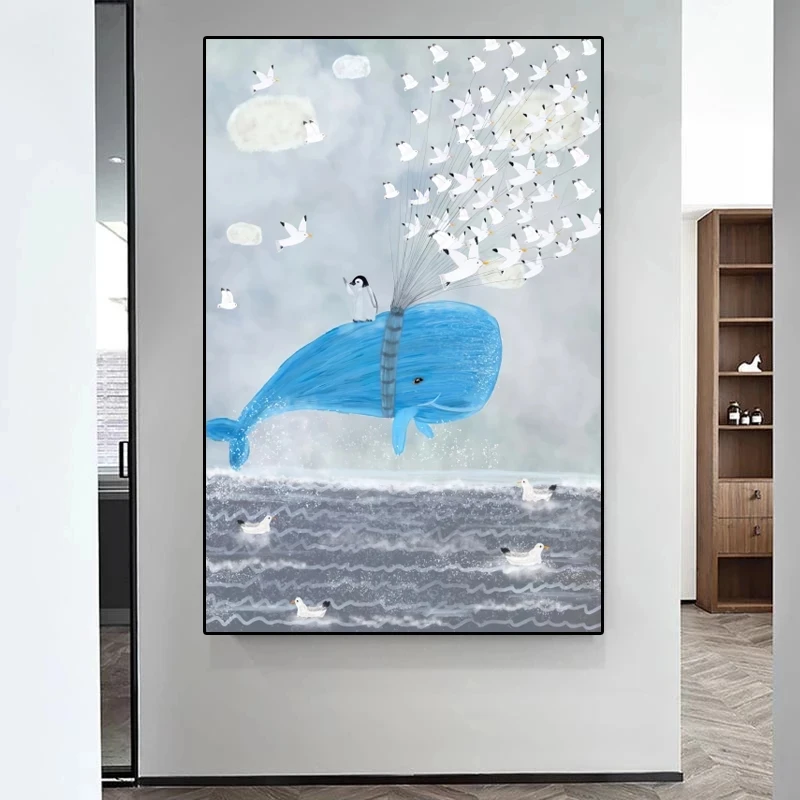 Художественный постер с изображением мультяшных животных, китов, рисунок на холсте, настенные художественные рисунки и принты для детской комнаты, детского сада, картина для украшения стен