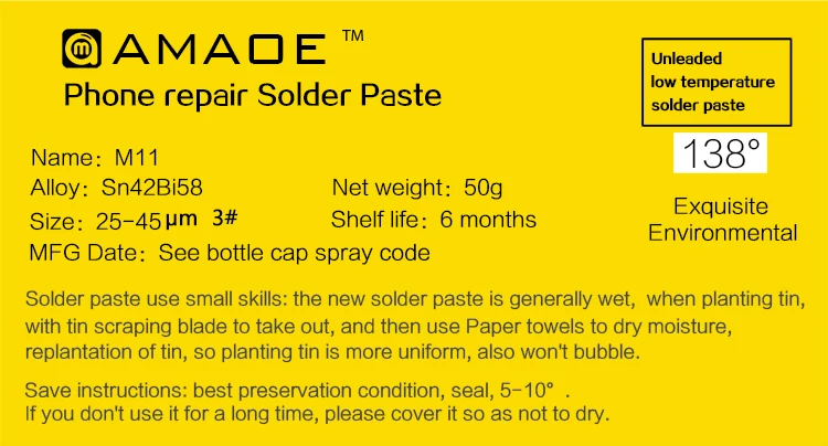 Паяльная паста AmaoE 50 г, M9, M10, M11, M13, 138, 183, 190, 217 градусов для чипов BGA, паяльная, Сварочная поток PCB