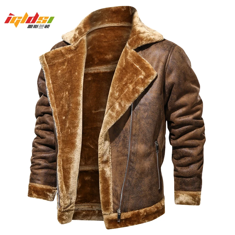 Мужская Зимняя Толстая внутренняя замшевая куртка с отложным воротником, пальто из флиса, мужская кожаная верхняя одежда, уличная ветровка