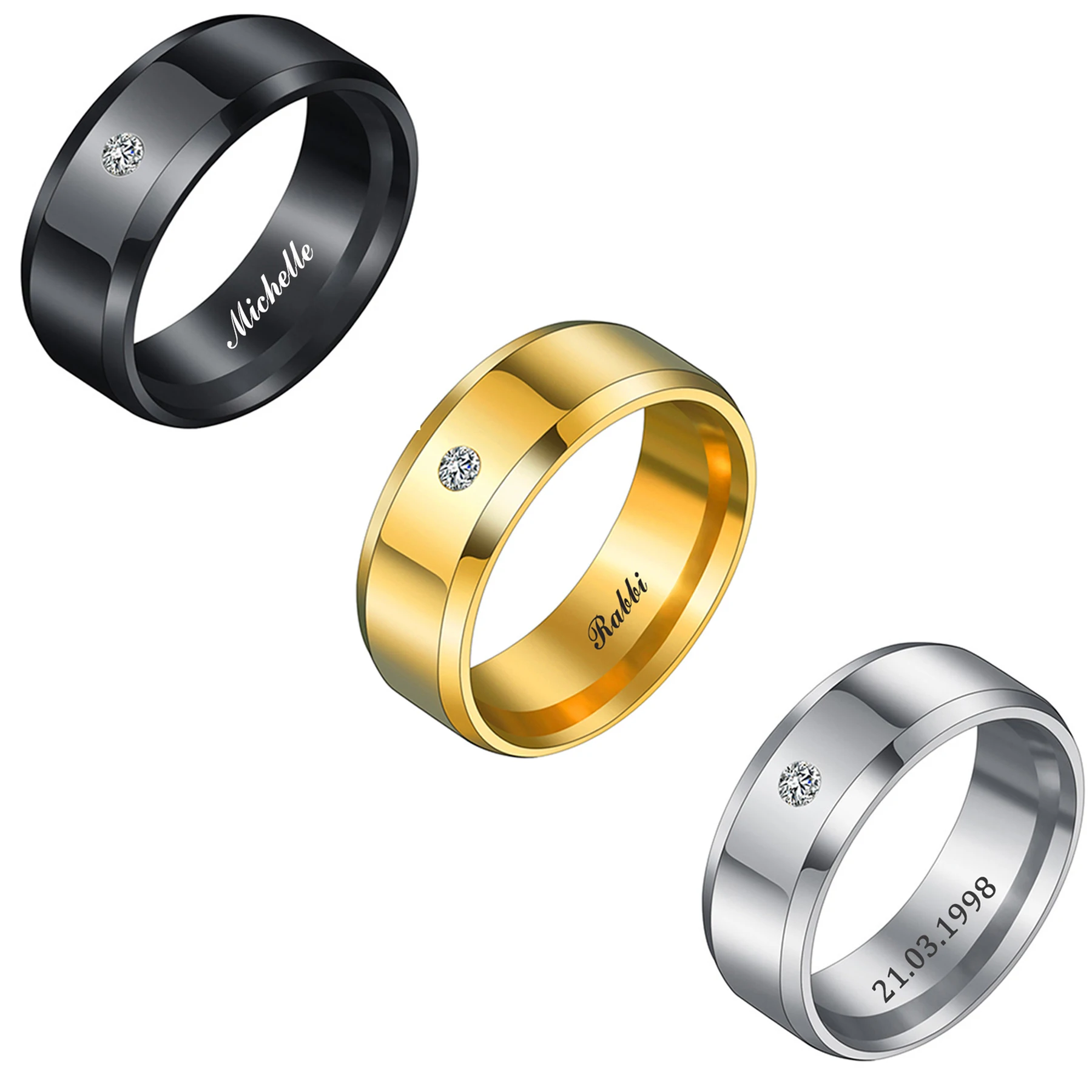 Гравировка букв, слов, искусственная кожа, золото, серебро, черный, на заказ, 8 мм, квадратный кристалл, кольцо, ювелирные изделия, подарок на день рождения