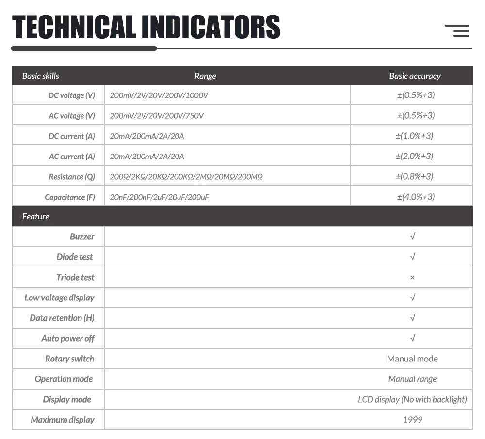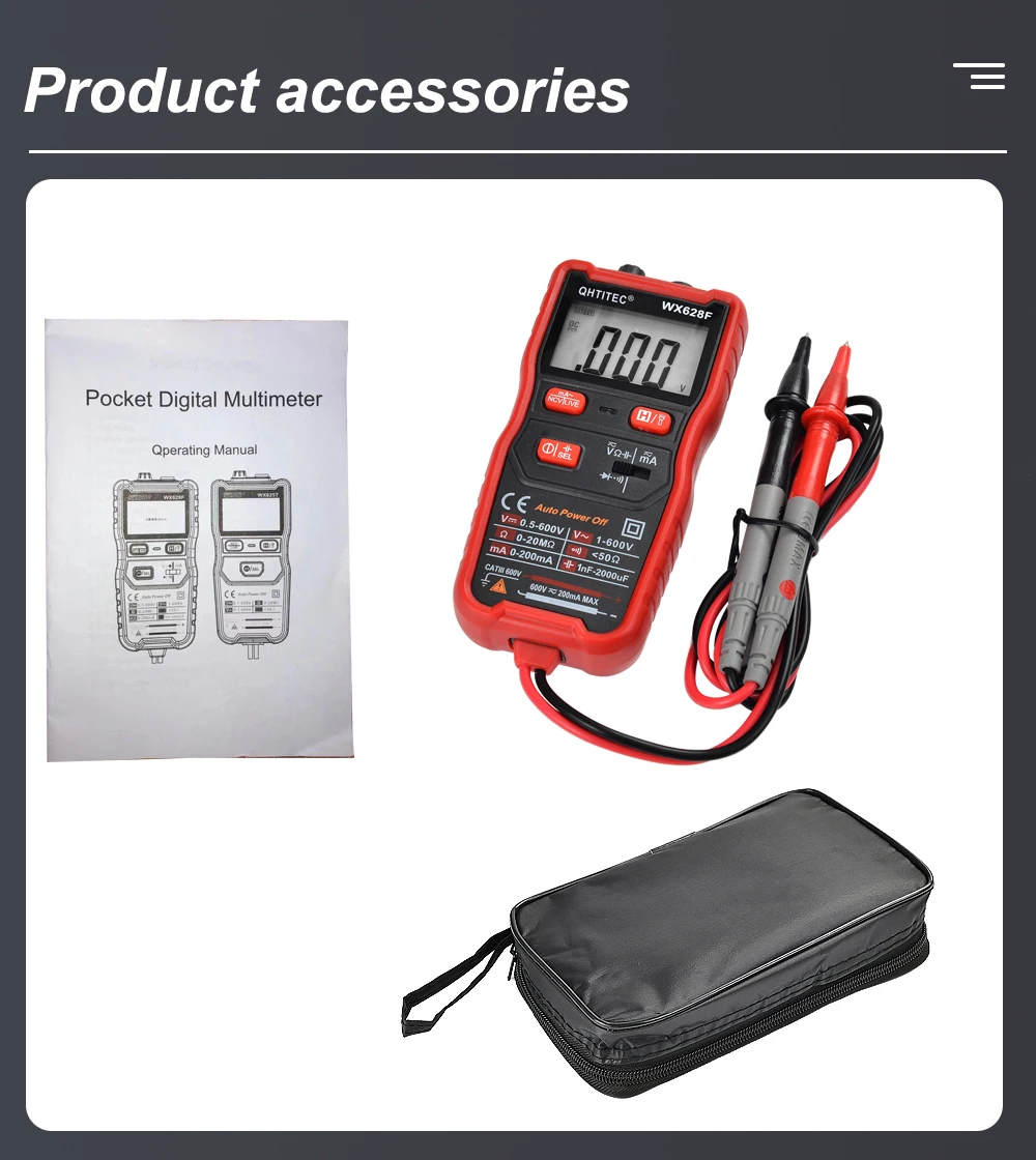 1. Этот измеритель представляет собой портативный цифровой мультиметр. Он имеет стабильную производительность, высокую точность, низкое энергопотребление, новую структуру, безопасность и надежность. Это идеальный счетчик для пользователей.2. Измеритель может измерять напряжение постоянного тока, напряжение переменного тока, постоянный ток, ток переменного тока, сопротивление, диод, непрерывность теста зуммер и емкость; Он имеет функцию Бесконтактного обнаружения напряжения (NCV), незамедлительно напоминаем пользователям обращать внимание на безопасную работу, делая пользователей более безопасными и уверенными.3. Этот мультиметр имеет автоматический диапазон, автоматическое отключение (около 15 минут без работы), подсветка, освещение и хранение данных, измерение живого провода, Предупреждение о низком напряжении, Частота дискретизации: около 3 раз в секунду, ЖК-дисплей: 3 1/24. Этот прибор спроектирован и изготовлен в строгом соответствии со стандартом безопасности IEC61010 и соответствует стандарту двойной изоляции и перенапряжения 600 В CAT III(Примечание: доставка не включает аккумуляторы)