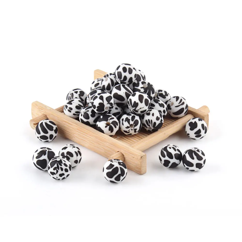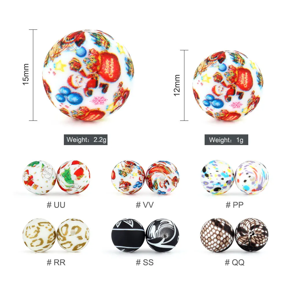 10 шт./лот, силиконовые круглые бусины, пищевой краситель, принт, 12 мм, 15 мм, DIY, жевательные цветные Прорезыватели для зубов, для детских пустышек