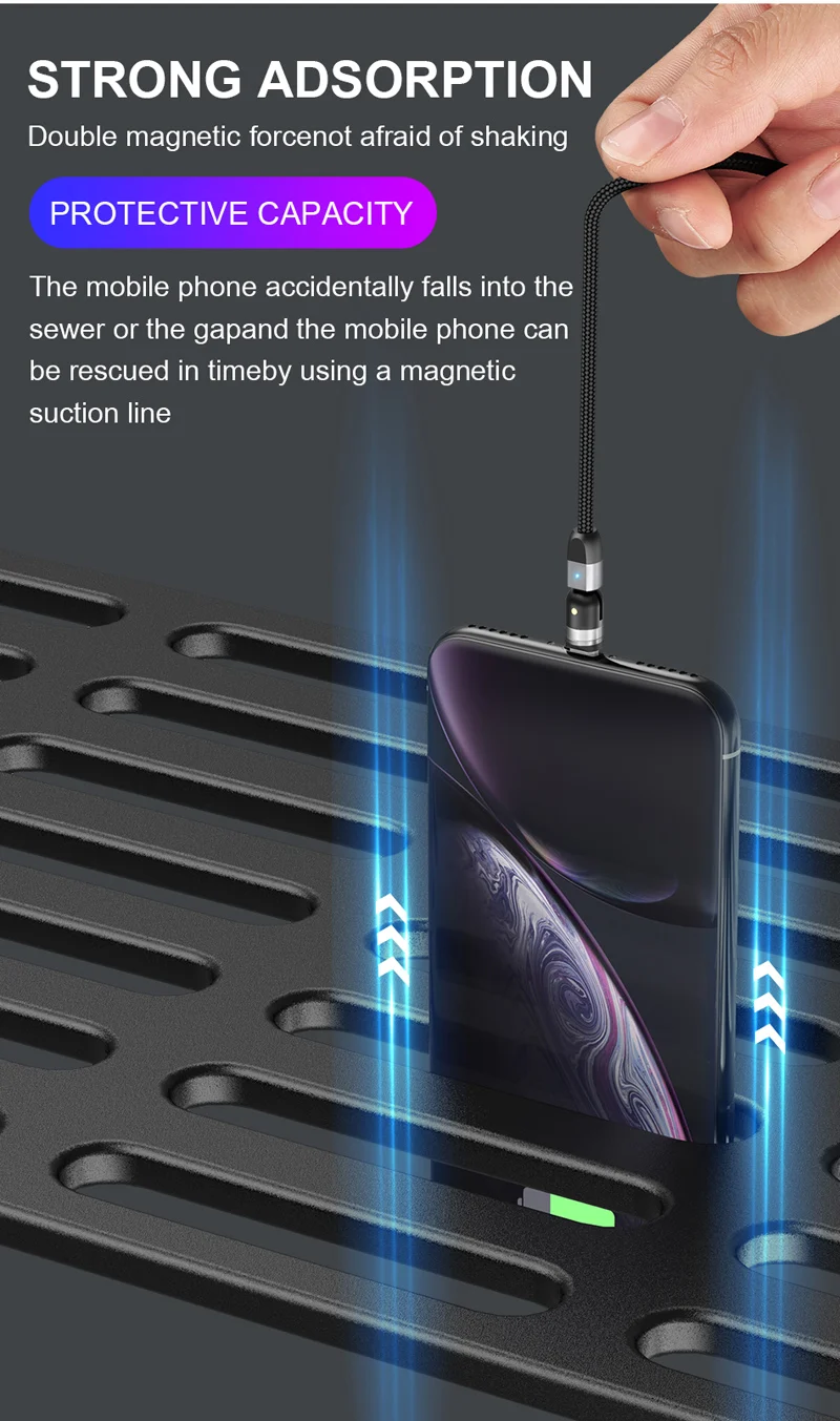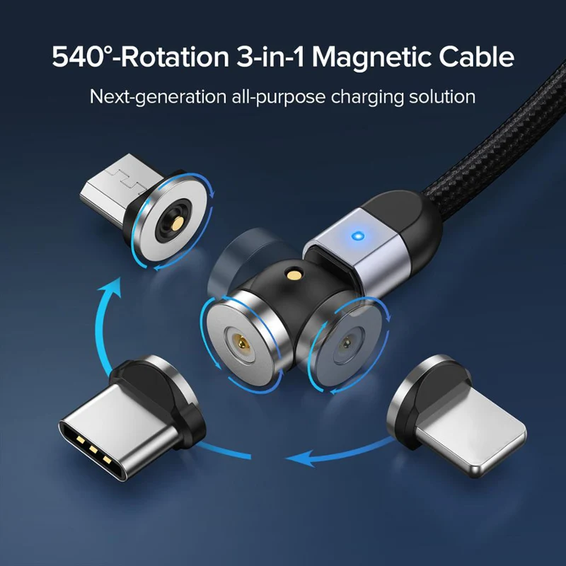 Магнитный зарядный кабель Micro USB Type-C, вращающийся на 540 град...