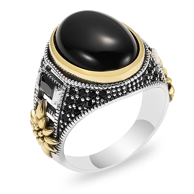 Классическое кольцо с черным овальным камнем для мужчин, ювелирные ...