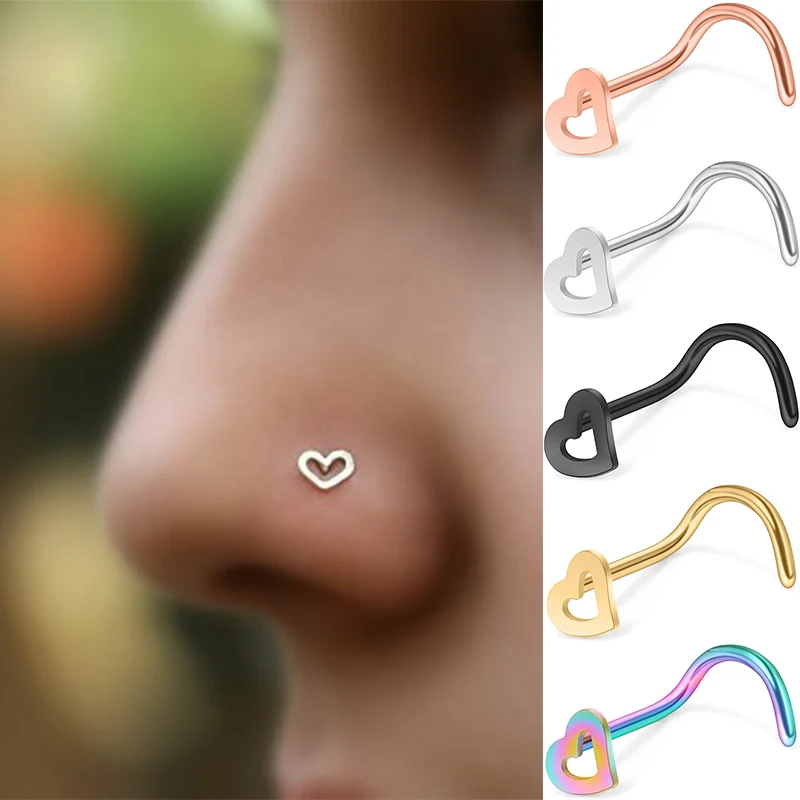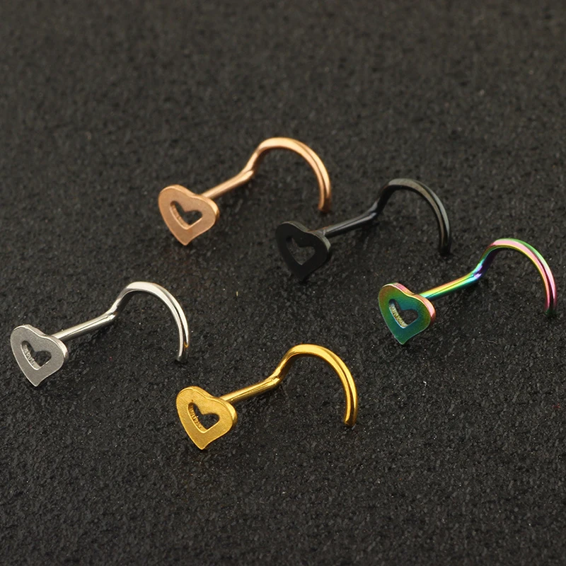 Серьги-гвоздики из нержавеющей стали для пирсинга носа, с сердечками