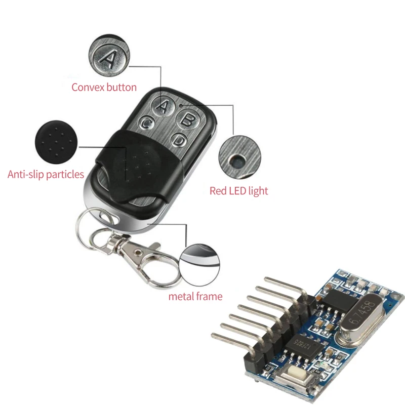 Передатчик поддерживает обучающий код (1527) общая микросхема, например, PT1527, EV1527 и т. д. Совместимость с большинством 1527 пульт дистанционного управления релейная панель приемника.