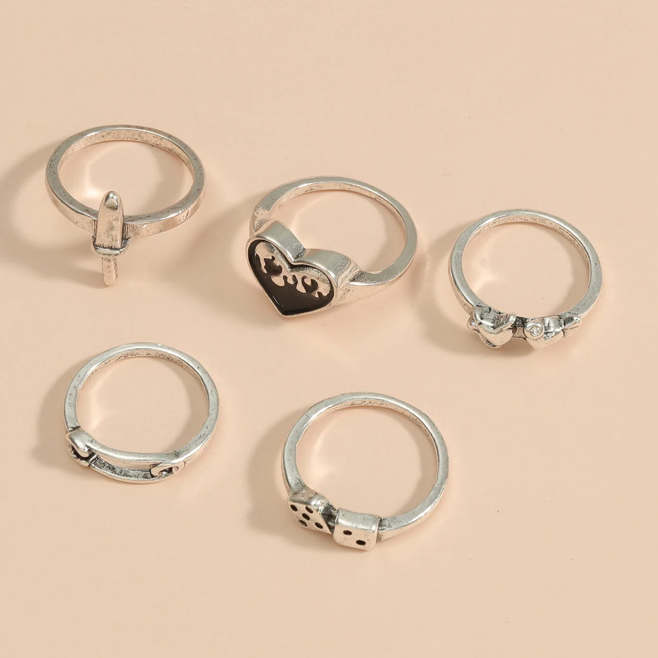 HANGZHI 2021 Новое Ретро индивидуальное черное Капельное любовное кольцо в виде кости кольцо из пяти частей Индивидуальные женские и женские модные ювелирные изделия