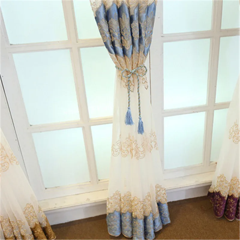 Европейские бархатные вышитые тюлевые шторы для гостиной, роскошные прозрачные тканевые оконные шторы для эркера, готовые шторы JD1152