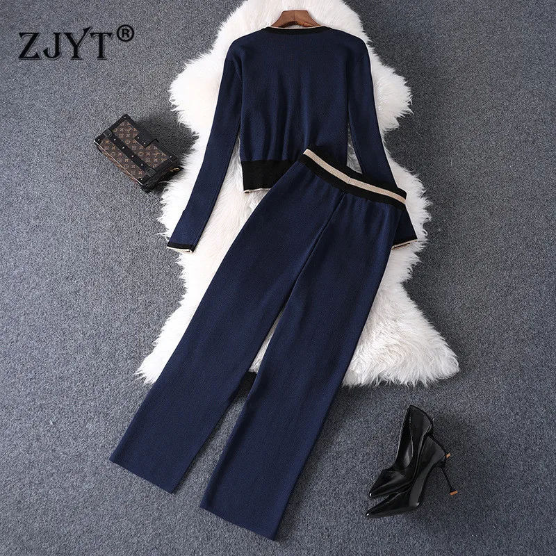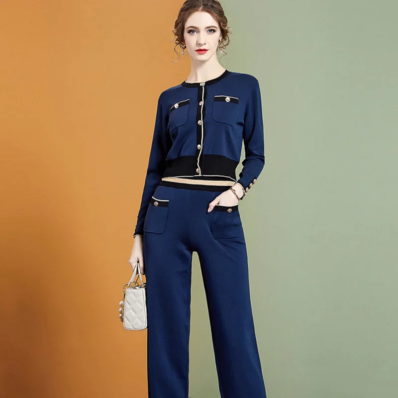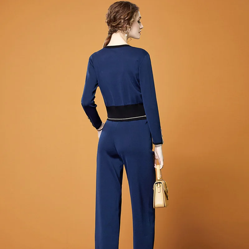 Женский трикотажный костюм из двух предметов, элегантный цветной Кардиган с длинным рукавом и брюки, повседневная одежда в офисном стиле, Осень-зима