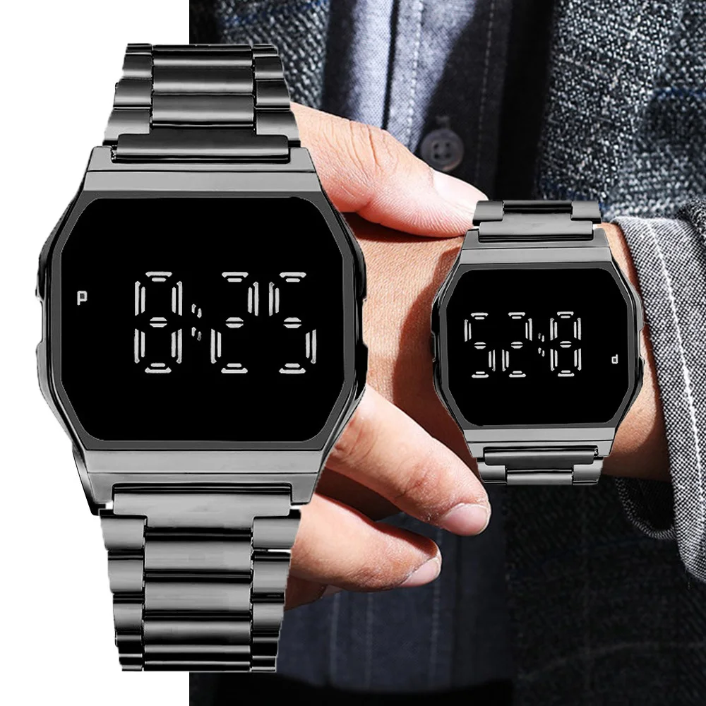 Часы мужские электронные, из нержавеющей стали, с сенсорным экраном