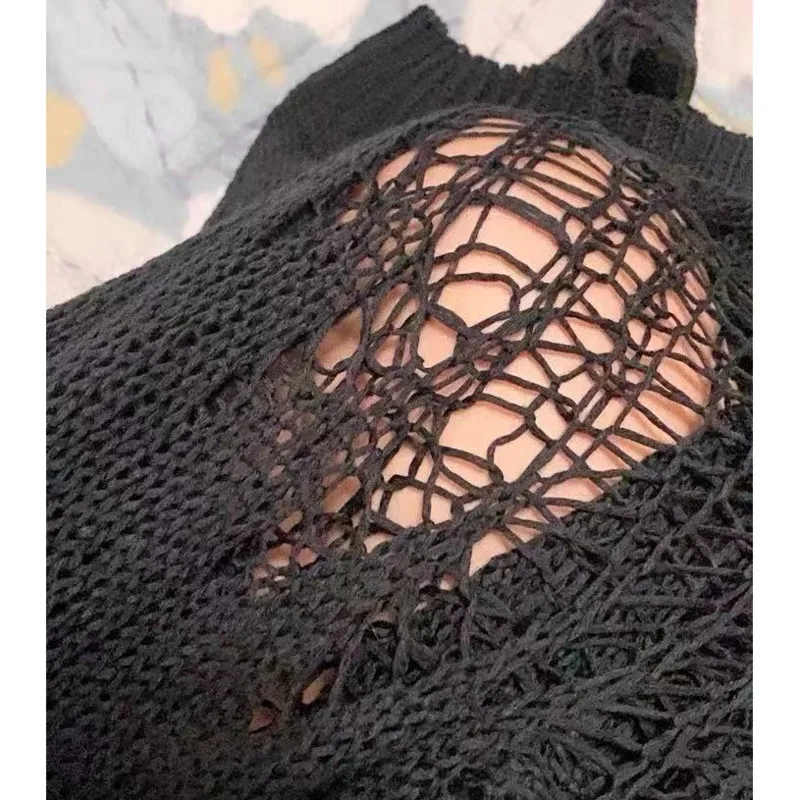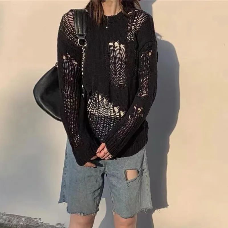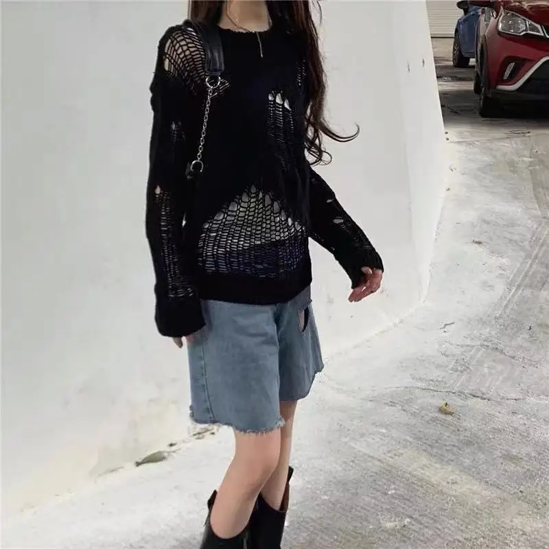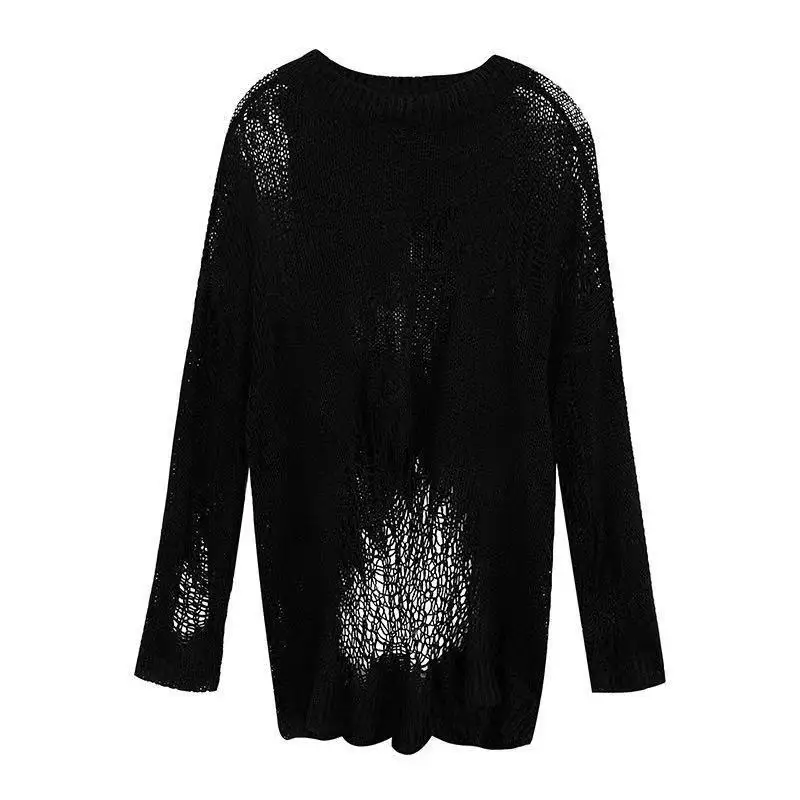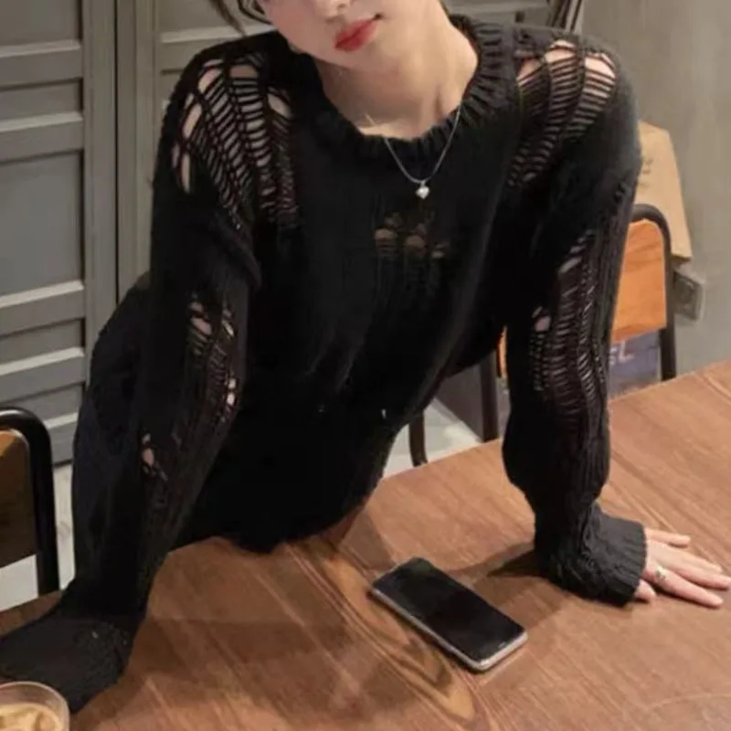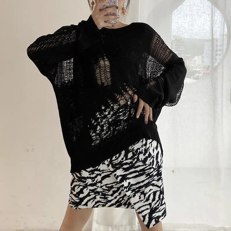 SXGOTH свитер Хэллоуин Готическая уличная рубашка с дырками вязаная зимняя женская одежда в стиле панк полый пуловер шерстяной тонкий сломанный