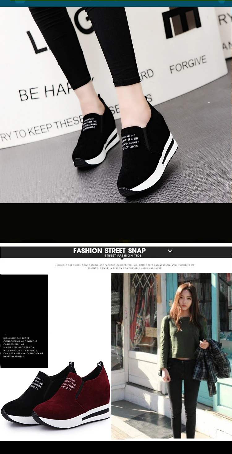 Женские кроссовки из флока на платформе, Повседневные Дышащие, на в...
