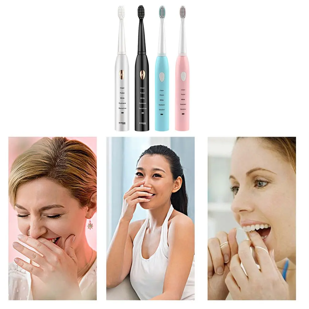 Электрическая зубная щетка для взрослых, перезаряжаемая зубная щетка, звуковая Автоматическая Мягкая зубная щетка, водонепроницаемая, зарядка через Usb